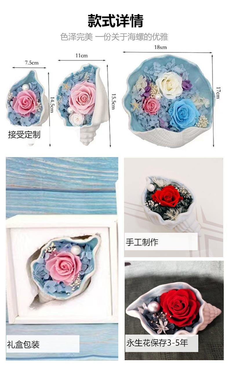Concha de flor eterna, grandes adornos de flores reales, regalo de cumpleaños, día de San Valentín, día de la madre, Navidad, venta al por mayor transfronteriza