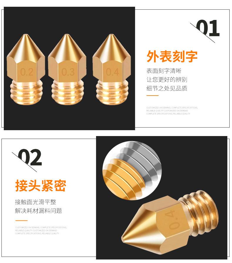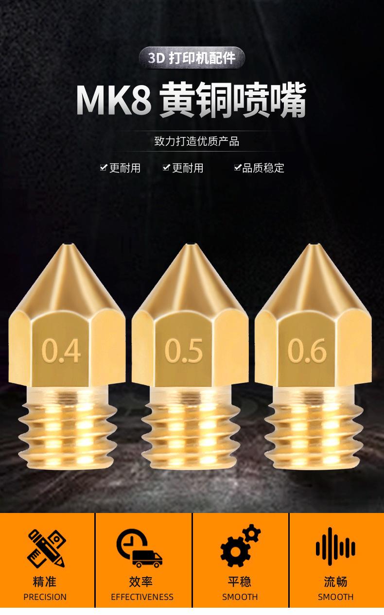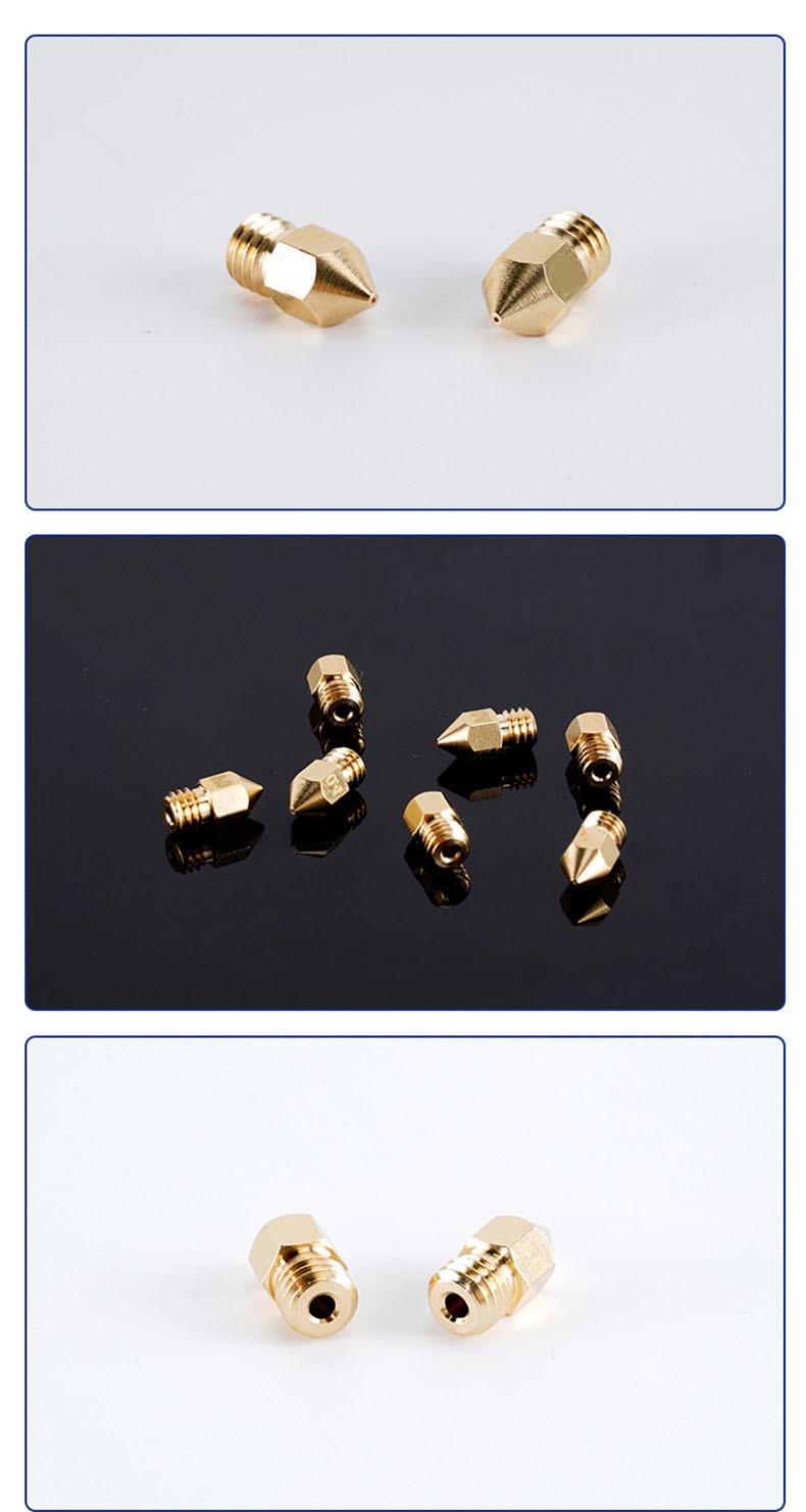 Venta al por mayor de fábrica accesorios de impresora 3D boquilla de latón puntiaguda mk8 boquilla de cabezal de impresión de extrusora boquilla diy