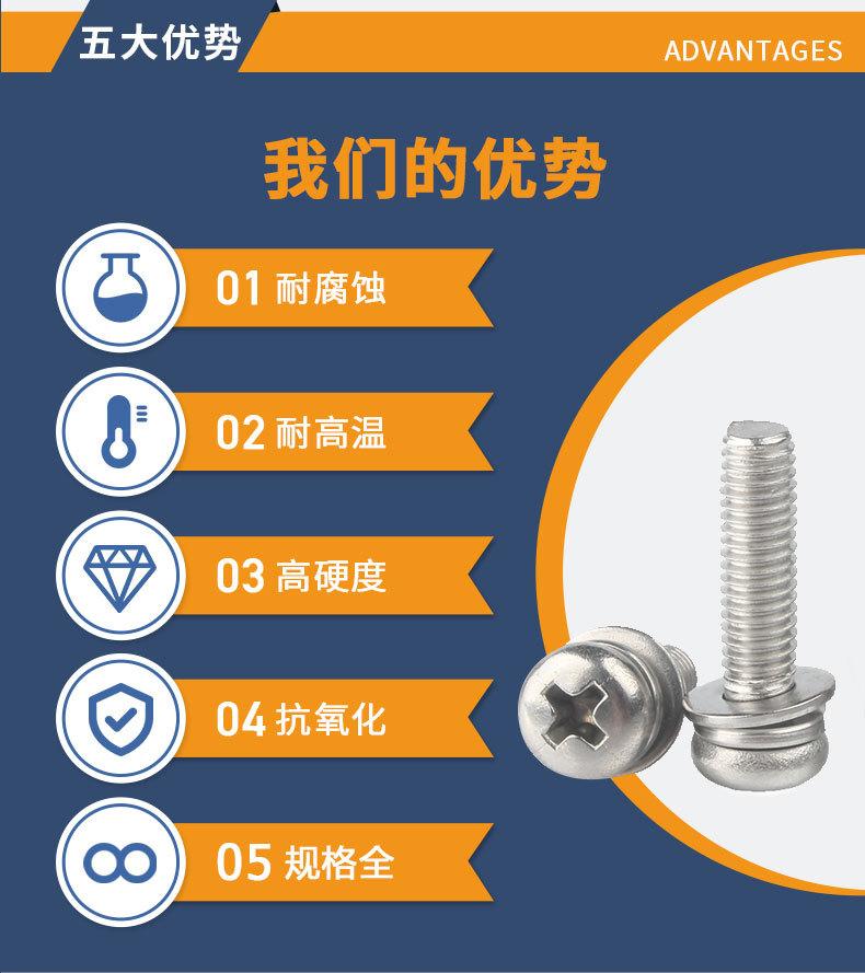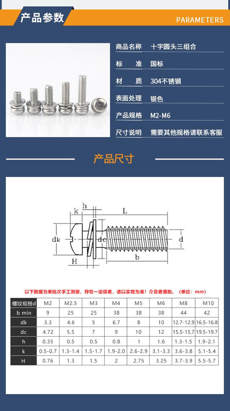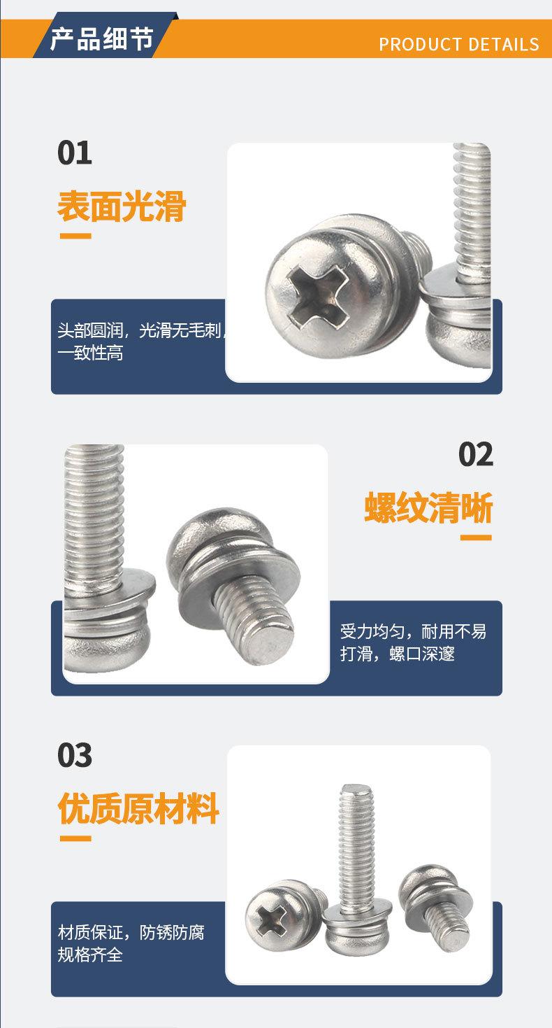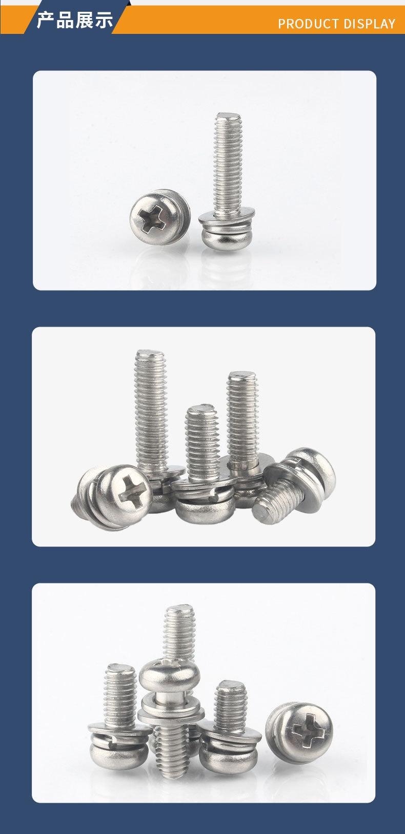 Tornillo de cabeza redonda con arandela, de acero inoxidable 304, con tres combinaciones, M1.6M2M2.5M3M4M5M6M8