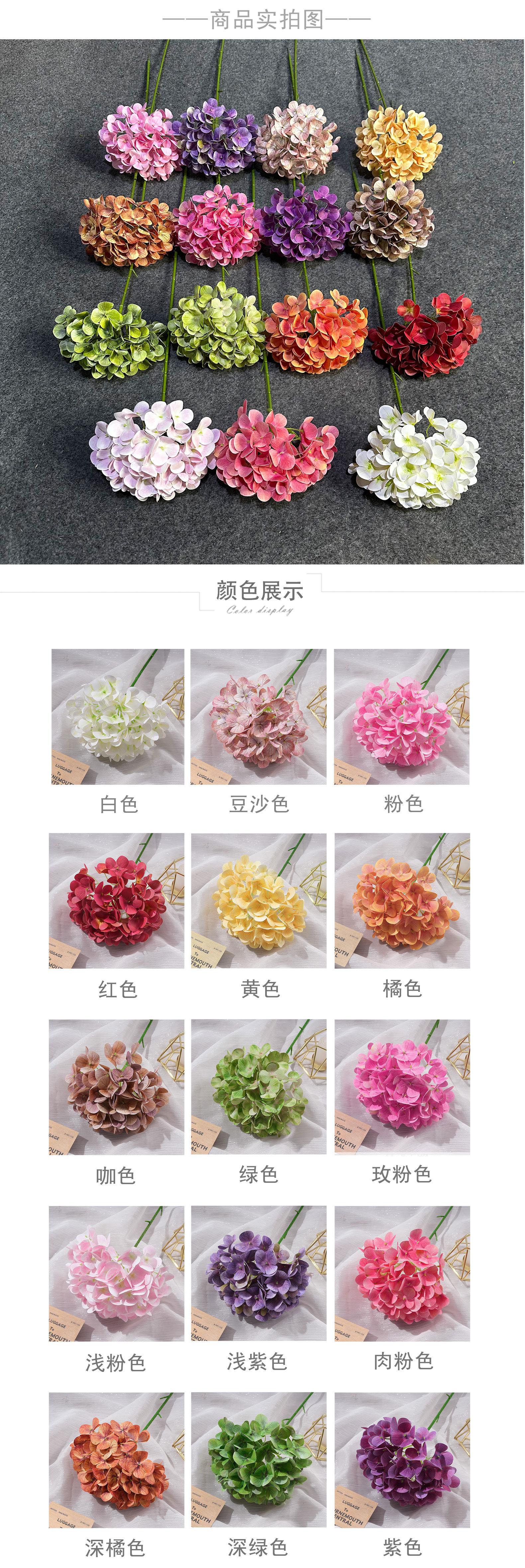 Hortensia artificial sin hojas, flor de seda, flor artificial al por mayor, flor de boda, sala de estar, adornos florales de alto sentido.