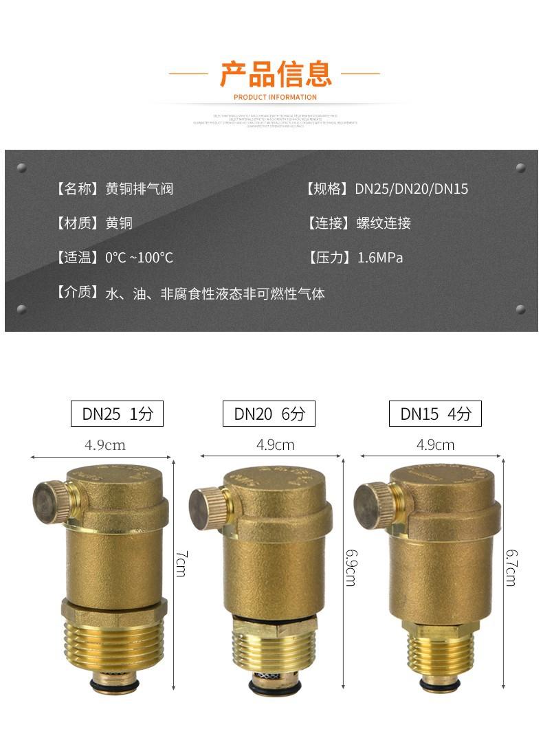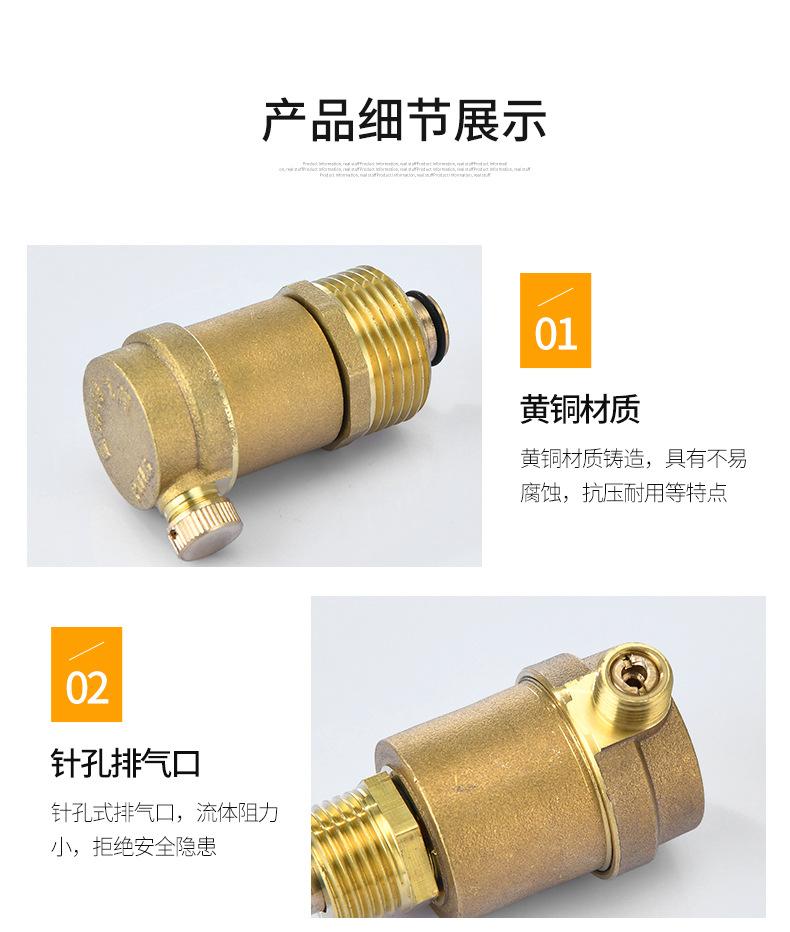 Válvula de escape de latón, tubo de calefacción, válvula de escape automática, válvula de cobre, válvula de escape recta simple DN15 20