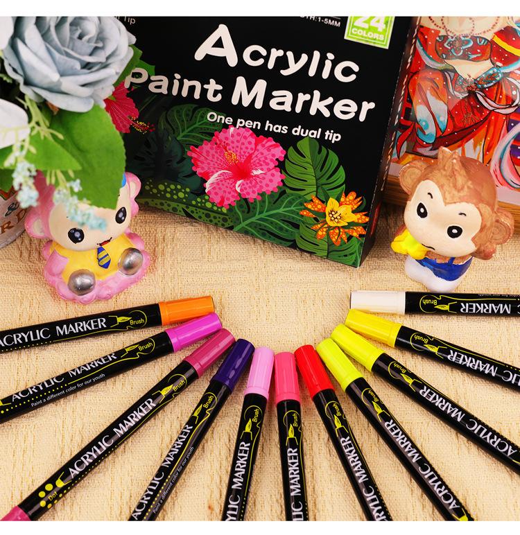 Compra Marcador acrílico de doble punta Guangna, nuevo bolígrafo de punta fina/pincel suave GN6700-24, color a base de agua, respetuoso con el medio ambiente, insípido. al por mayor en Joom.pro