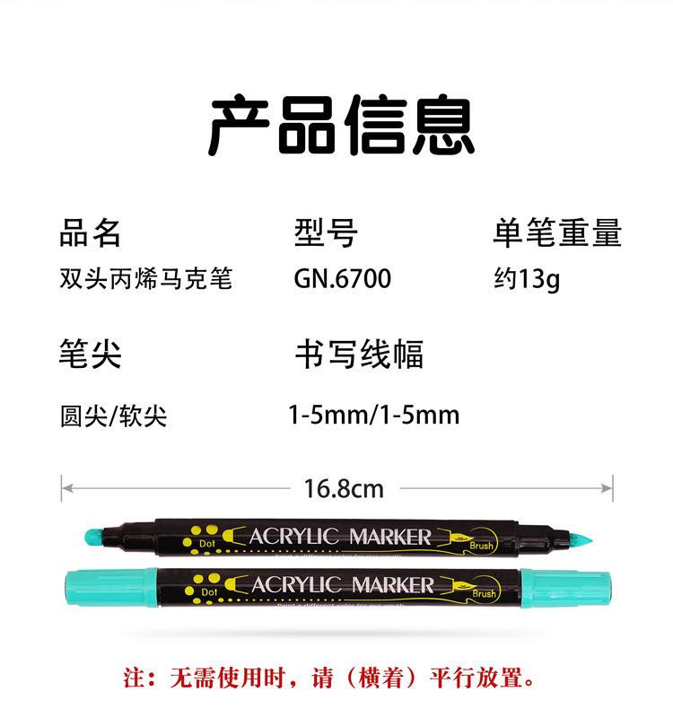 Marcador acrílico de doble punta Guangna, nuevo bolígrafo de punta fina/pincel suave GN6700-24, color a base de agua, respetuoso con el medio ambiente, insípido.