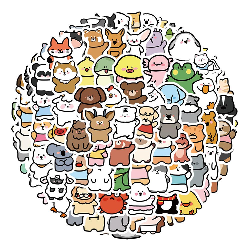 100 pegatinas de grafiti de animales lindos de dibujos animados para teléfono móvil, taza de agua, equipaje, guitarra, pegatinas impermeables al por mayor