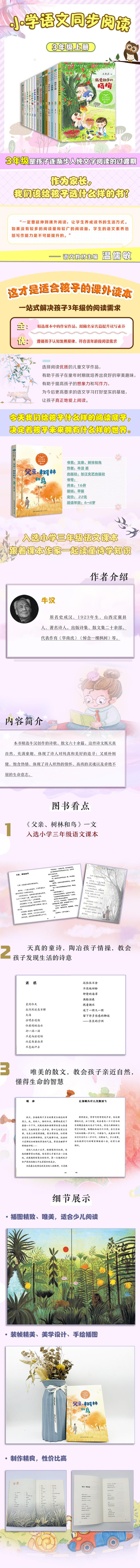 El artículo "Padre, Bosque y Pájaros" fue seleccionado para el libro de texto de tercer grado de chino; los poemas infantiles inocentes cultivan los sentimientos de los niños y les enseñan a descubrir la poesía de la vida; la hermosa prosa enseña a los niños a acercarse a la naturaleza y a comprender la sabiduría de la vida.