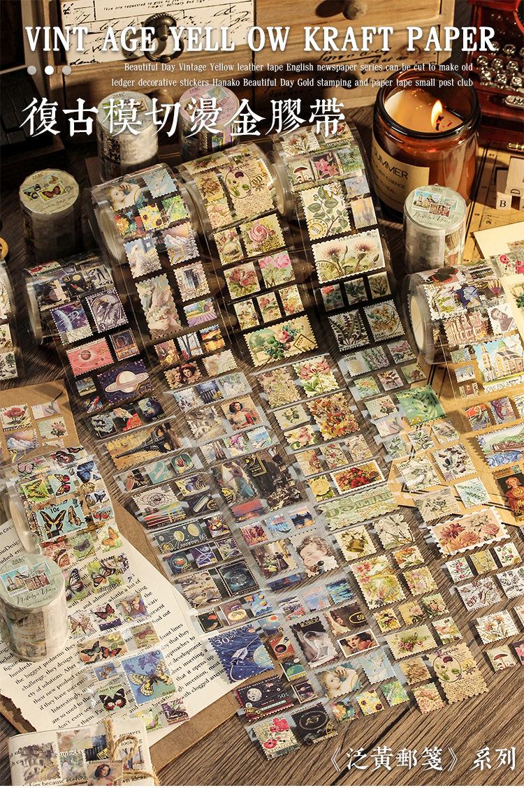 Cinta adhesiva transfronteriza, serie de notas de correo amarillento, cuenta de mano, material de decoración, collage, respaldo, pegatinas, nota, mensaje 6