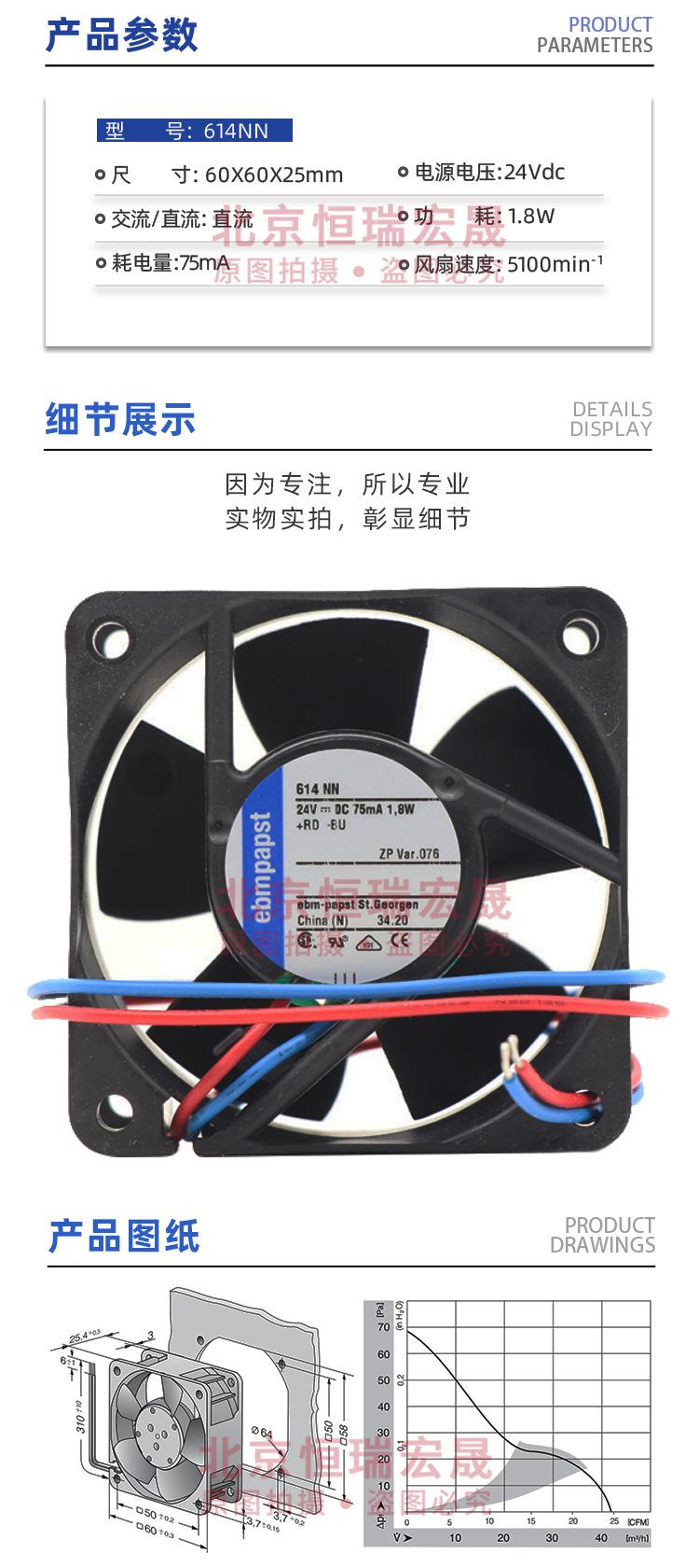 Ventilador Ebmpapst 614NN 6025 24v ventilador de refrigeración para inversor de chasis electrónico militar