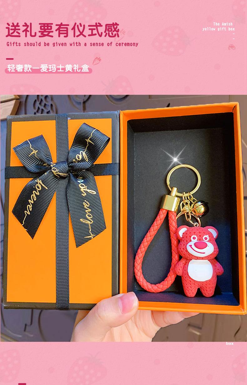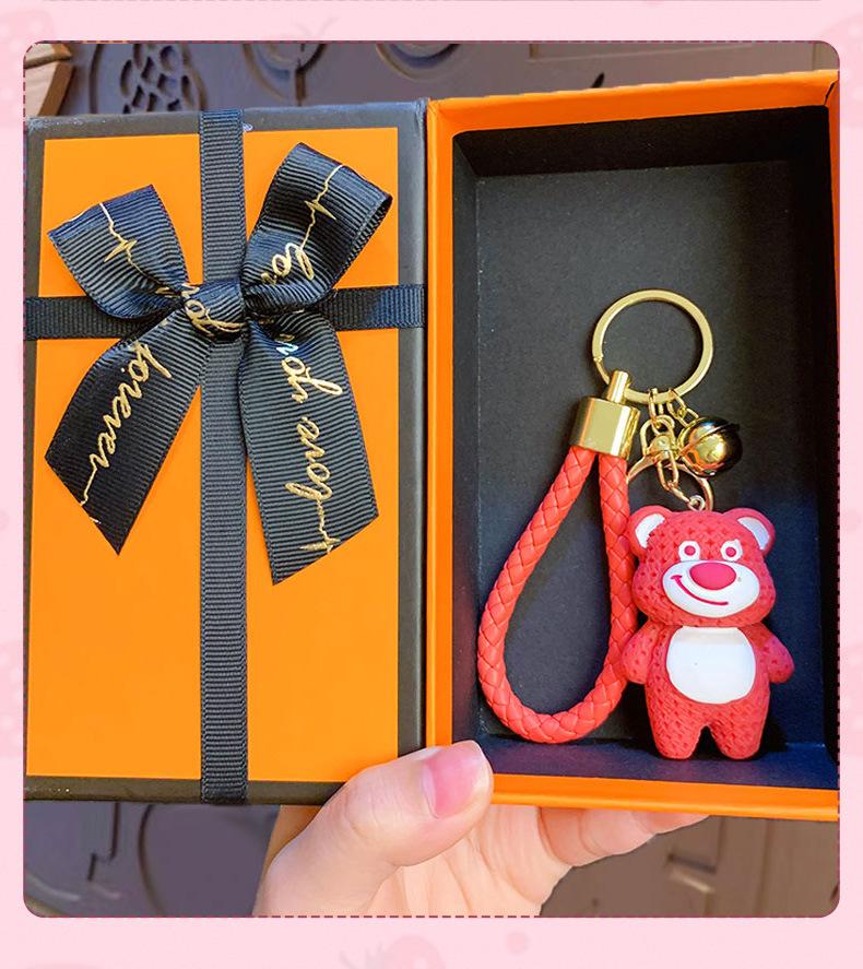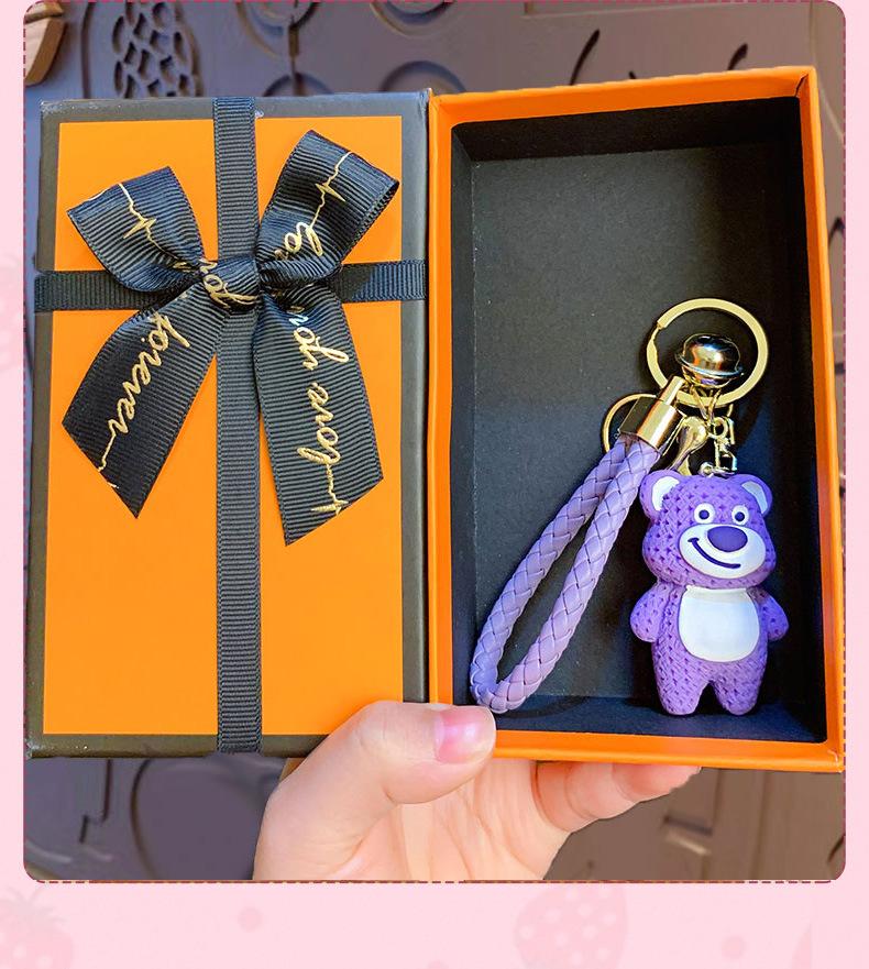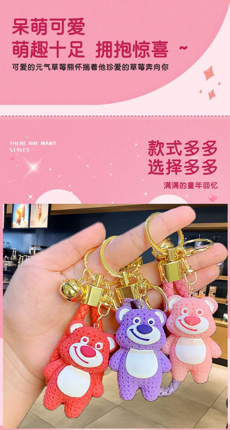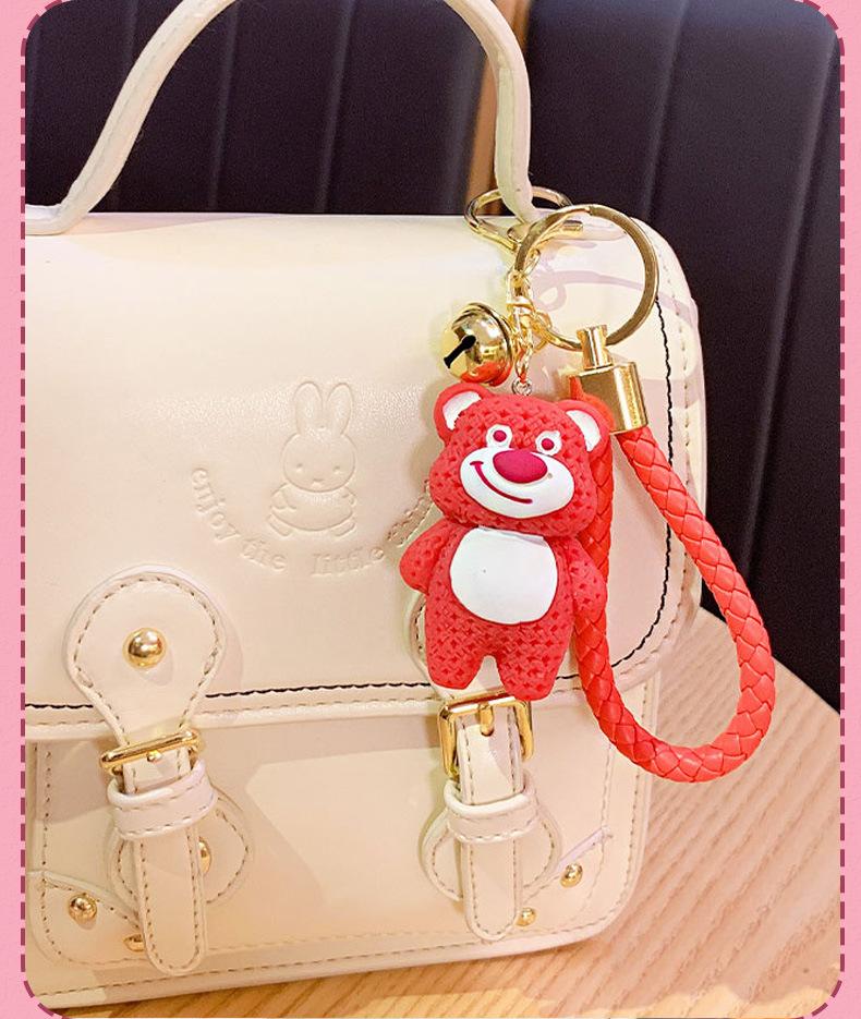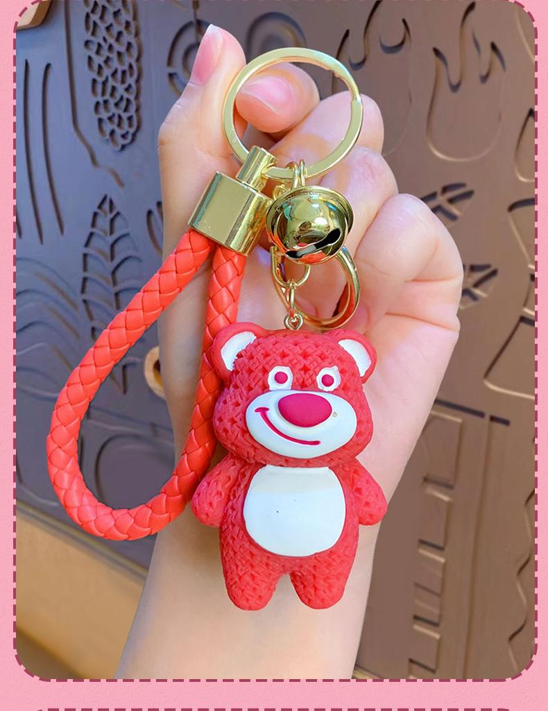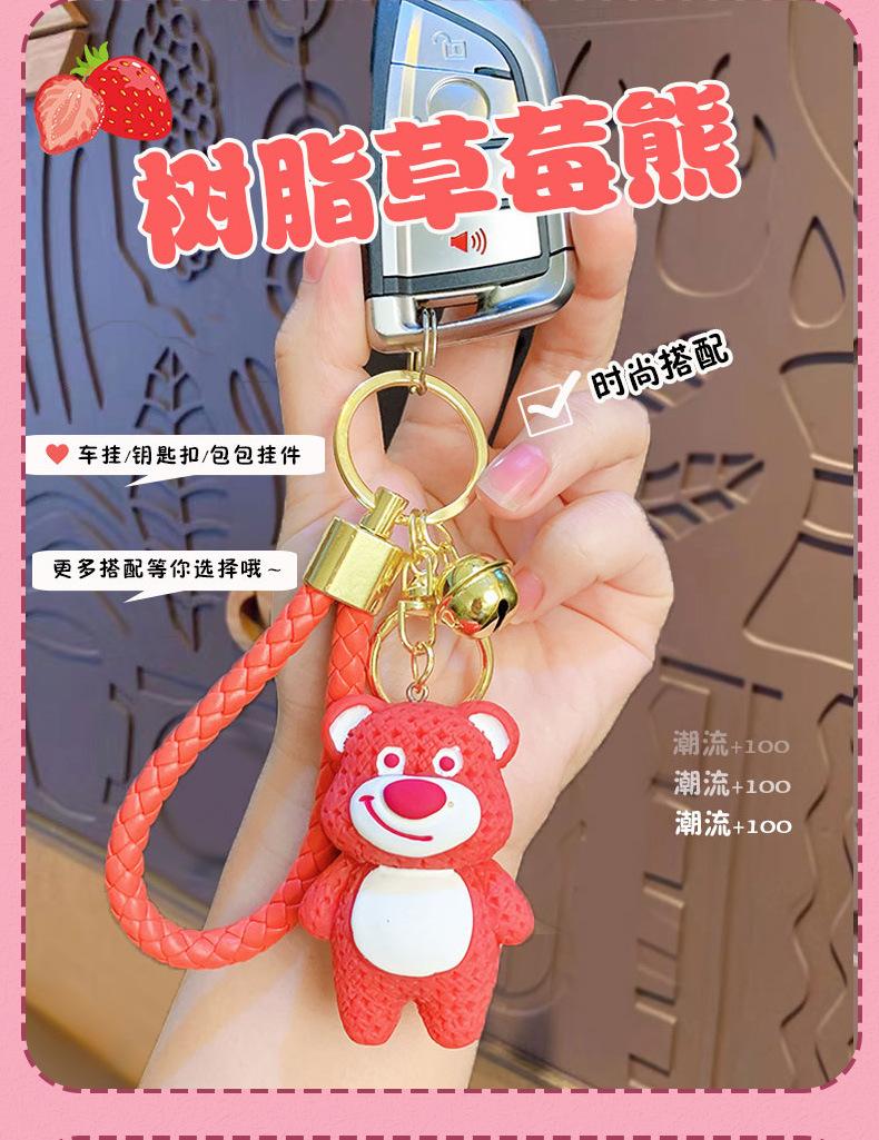 Compra LLavero de resina con forma de oso de fresa y dibujos animados, colgante para mochila escolar, llavero de coche, pequeño regalo al por mayor al por mayor en Joom.pro