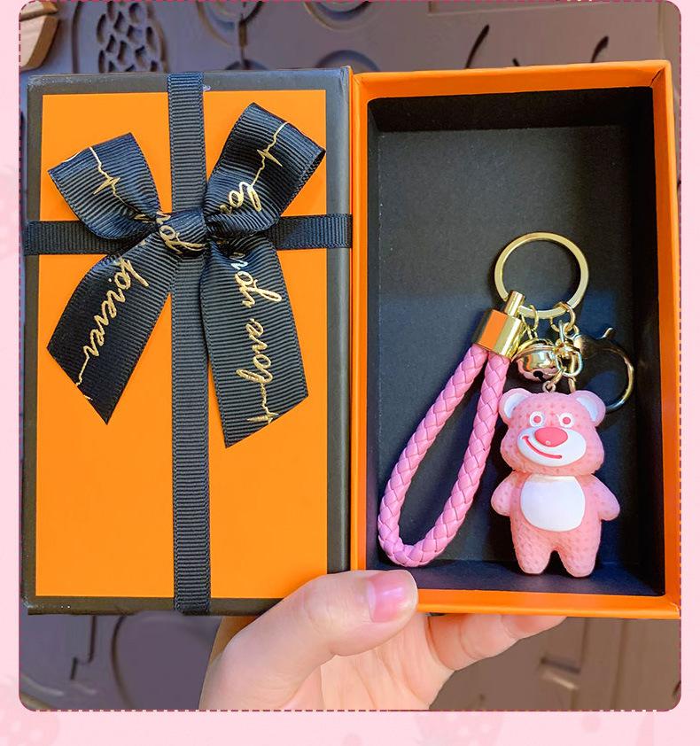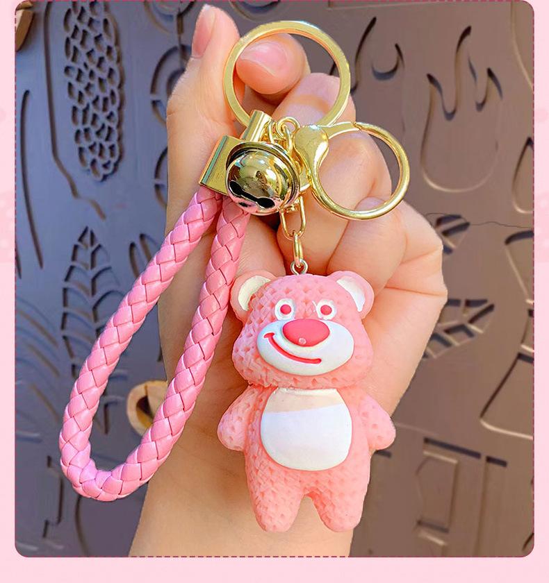 LLavero de resina con forma de oso de fresa y dibujos animados, colgante para mochila escolar, llavero de coche, pequeño regalo al por mayor