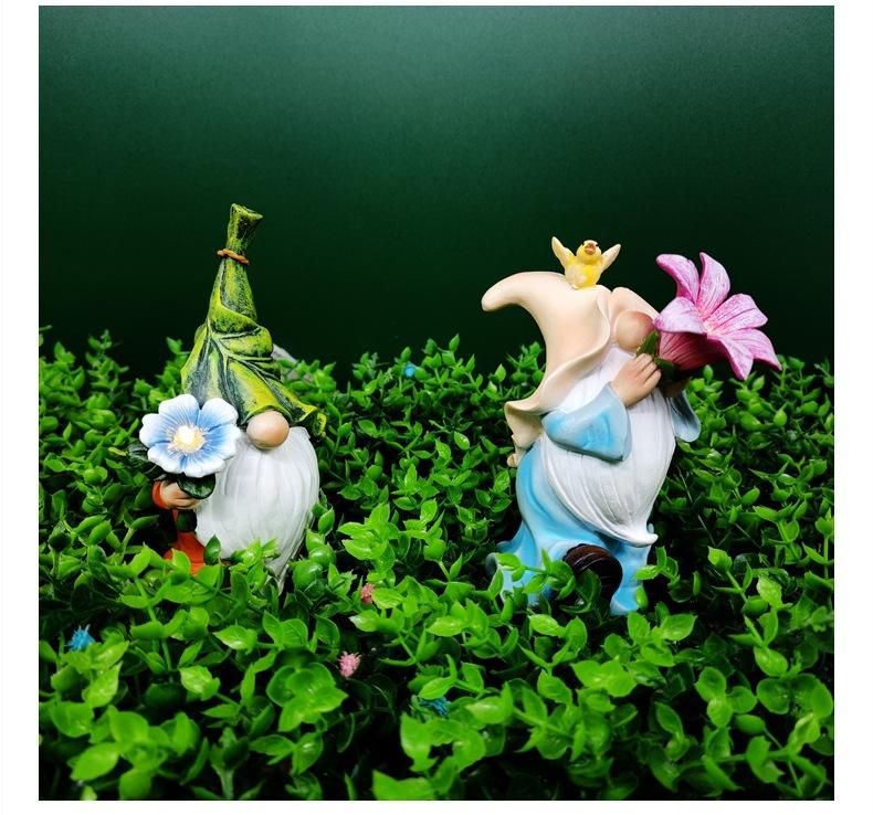 Artesanías de Resina al Por Mayor Enano de Jardín Decoración Exterior Muebles Nuevas Flores Adornos de Elfo sin Rostro Ideas Creativas