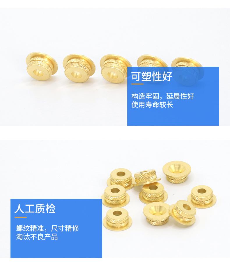 Tuerca moleteada de cobre, procesamiento de insertos de tuerca de cobre CNC, moldeo por inyección, inserto de cobre, piezas incrustadas de tuerca moleteada