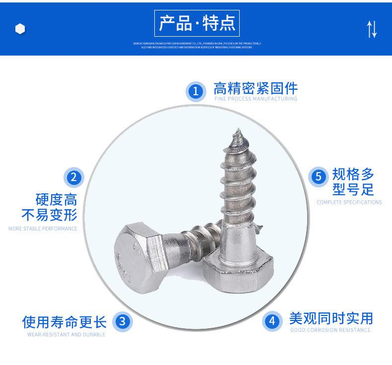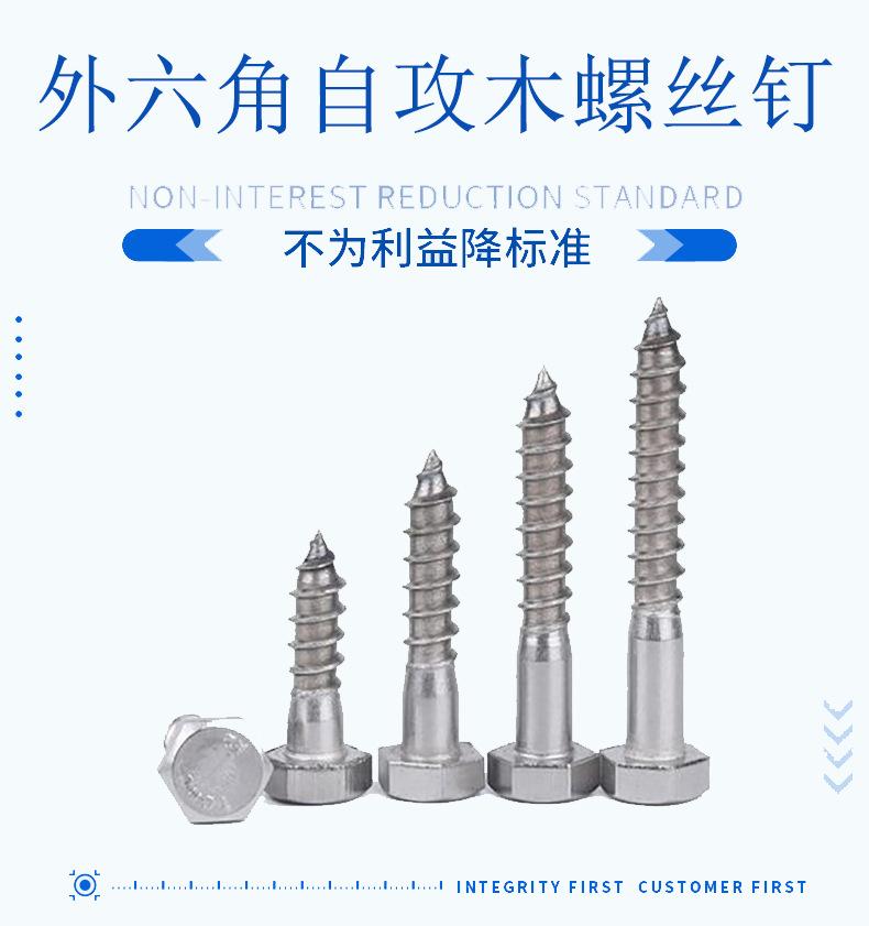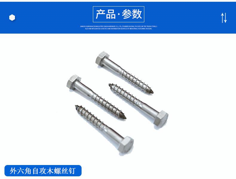 Los fabricantes venden tornillos autorroscantes para madera externos de acero inoxidable con cabeza hexagonal estándar alemán, tornillos autorroscantes M6M8, tornillos de cabeza hexagonal.