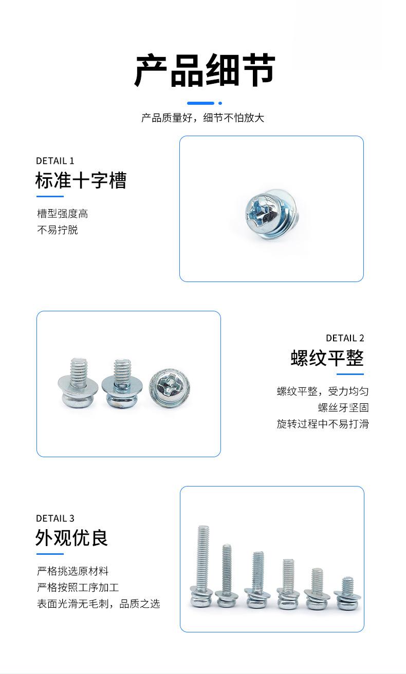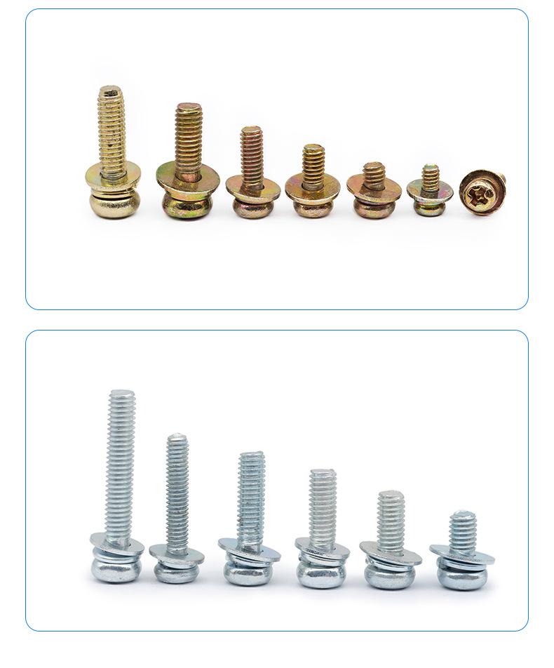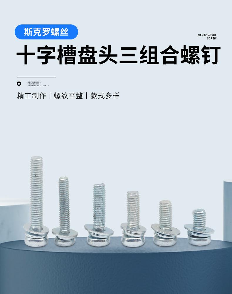 Tornillo de cabeza plana con ranura en cruz, tres combinaciones, resorte, almohadilla plana, zinc, niquelado, tornillo pequeño electrónico skroe GB/T9074.4