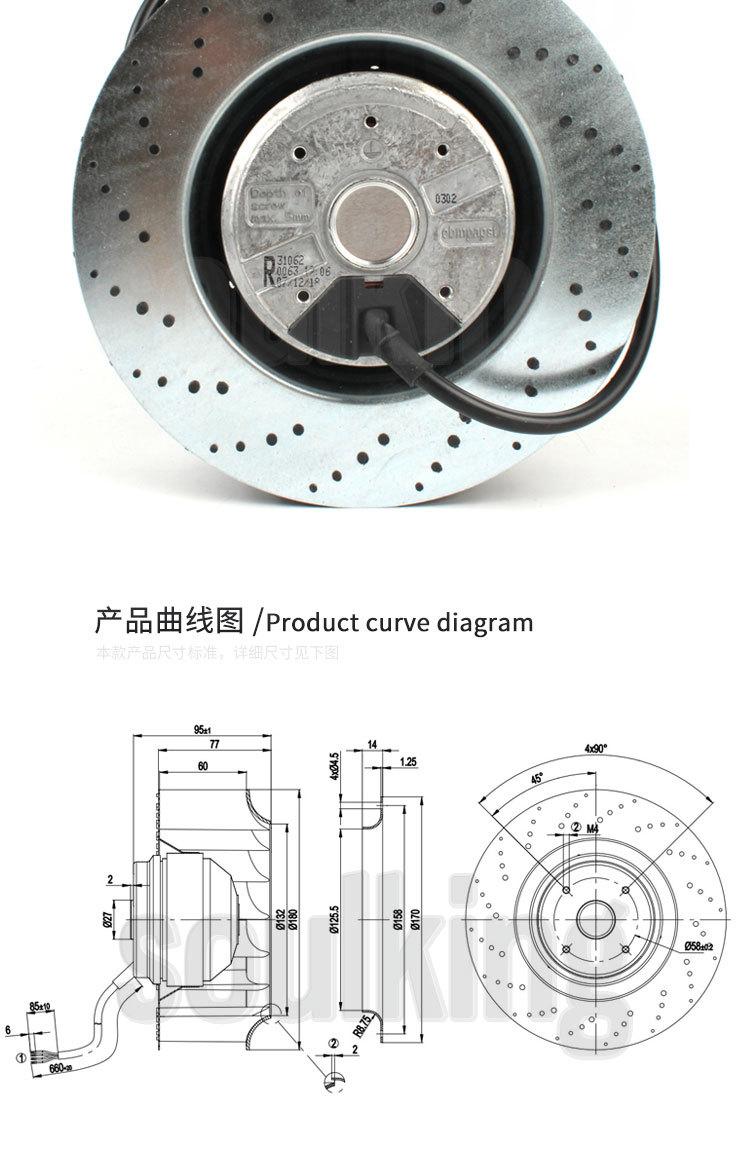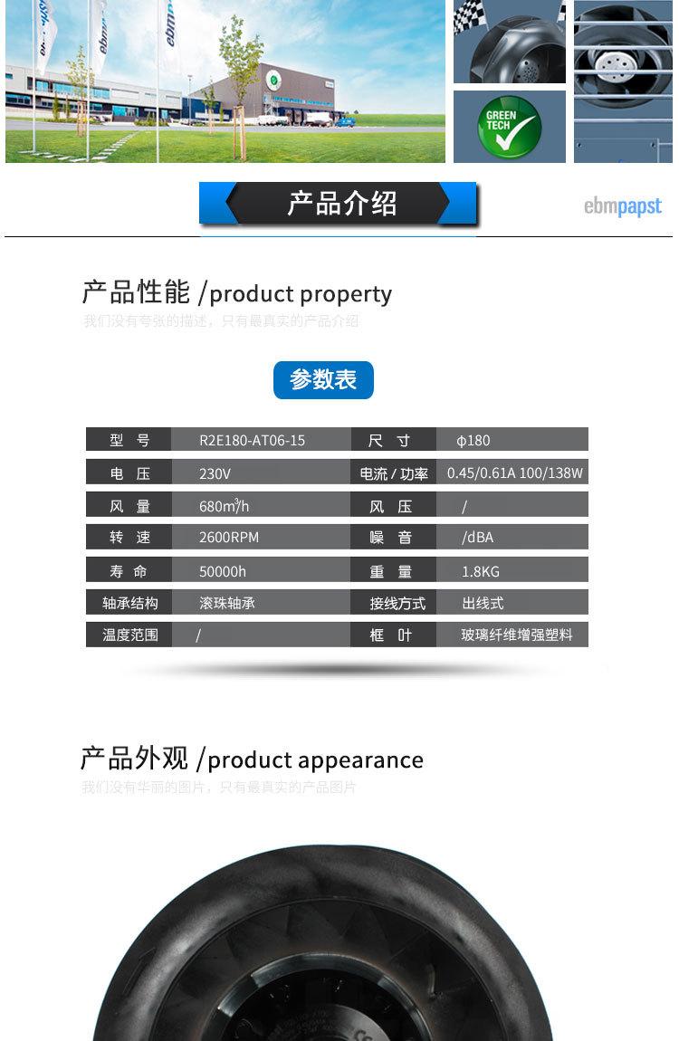 Ventilador centrífugo de turbina original alemán ebmpapst R2E180-AT06-15, 230 V, 0,45/0,61 A
