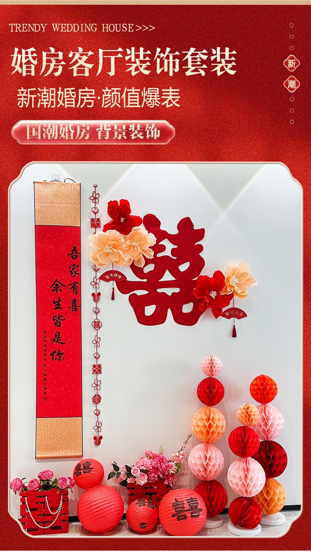 Compra Decoración de la sala de bodas, traje de boda, dormitorio de hombres y mujeres, boda, casa nueva, sala de estar, dormitorio, guirnalda, personaje Xi, fondo de pared al por mayor en Joom.pro