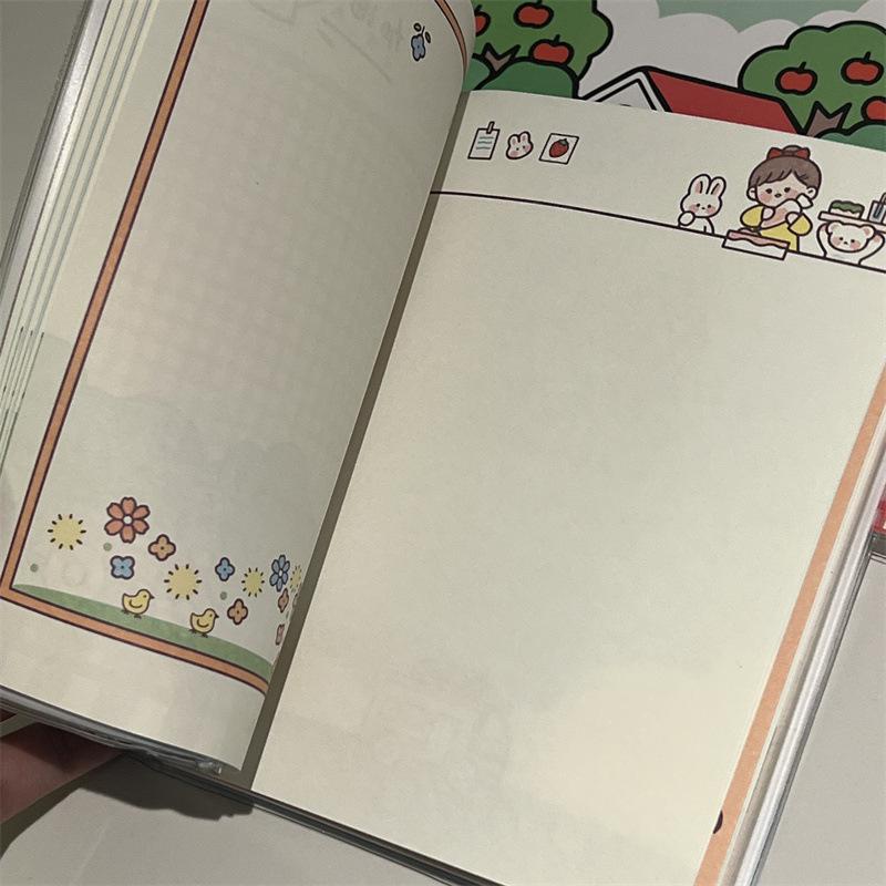 Ins diario de niña japonesa libro cuaderno de dibujos animados de niña pequeña de aspecto elegante libro de páginas a color cuaderno de páginas a color cubierta de goma Cuaderno A5