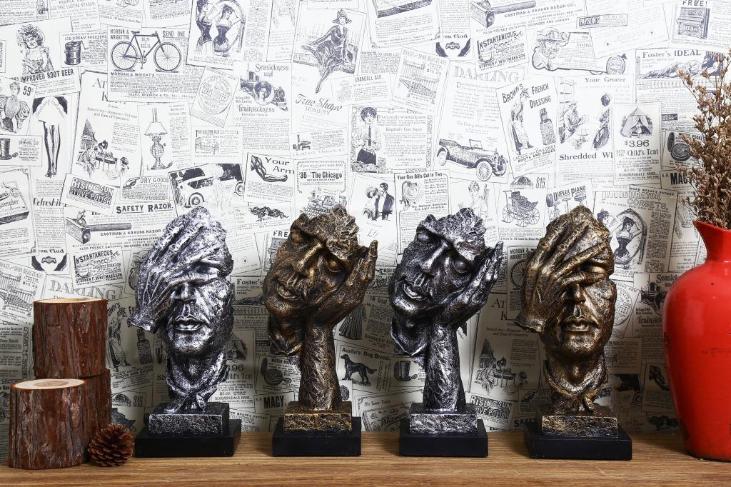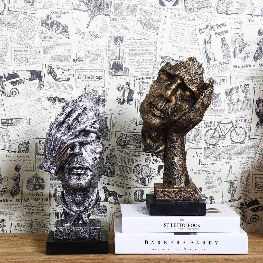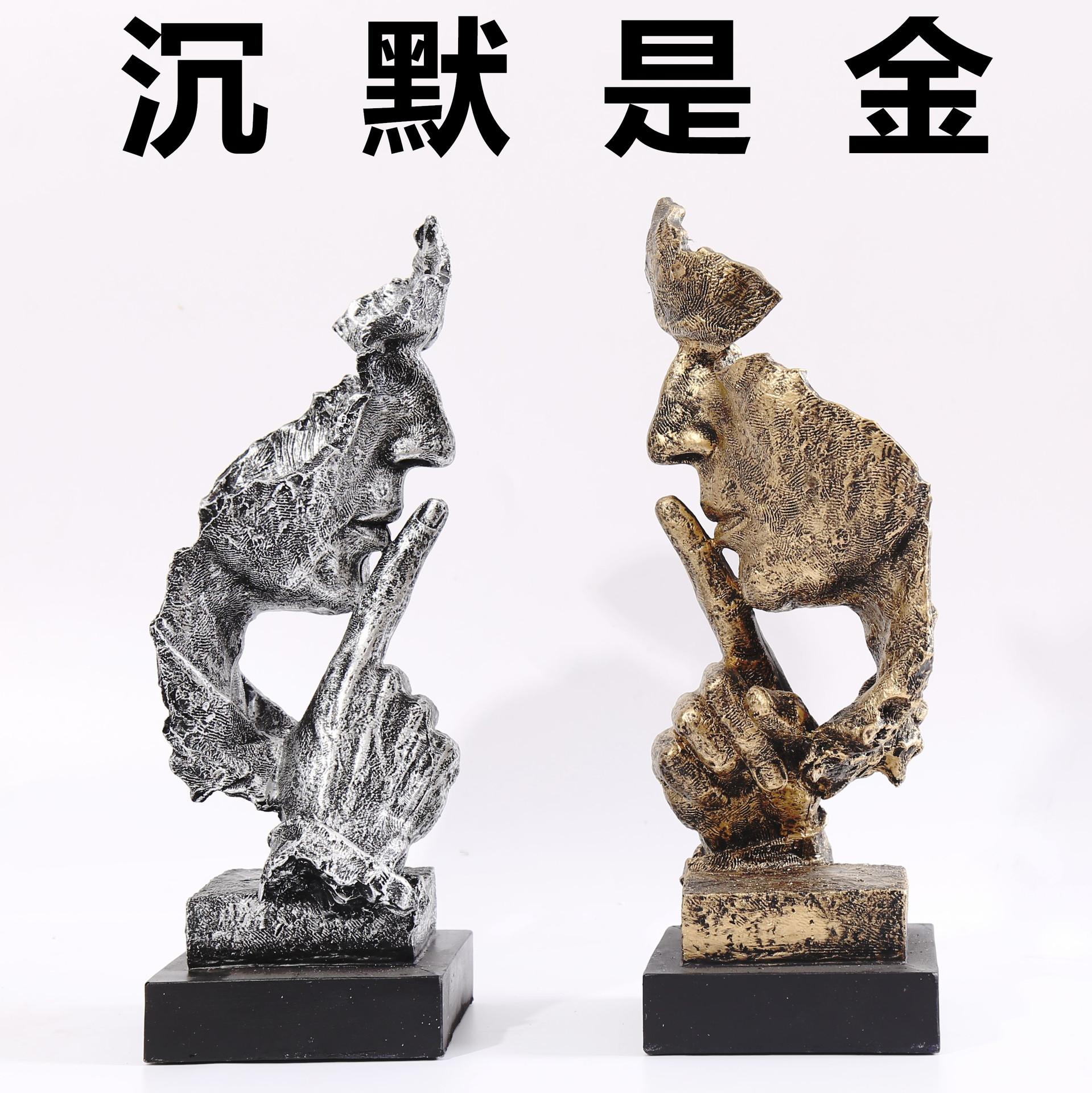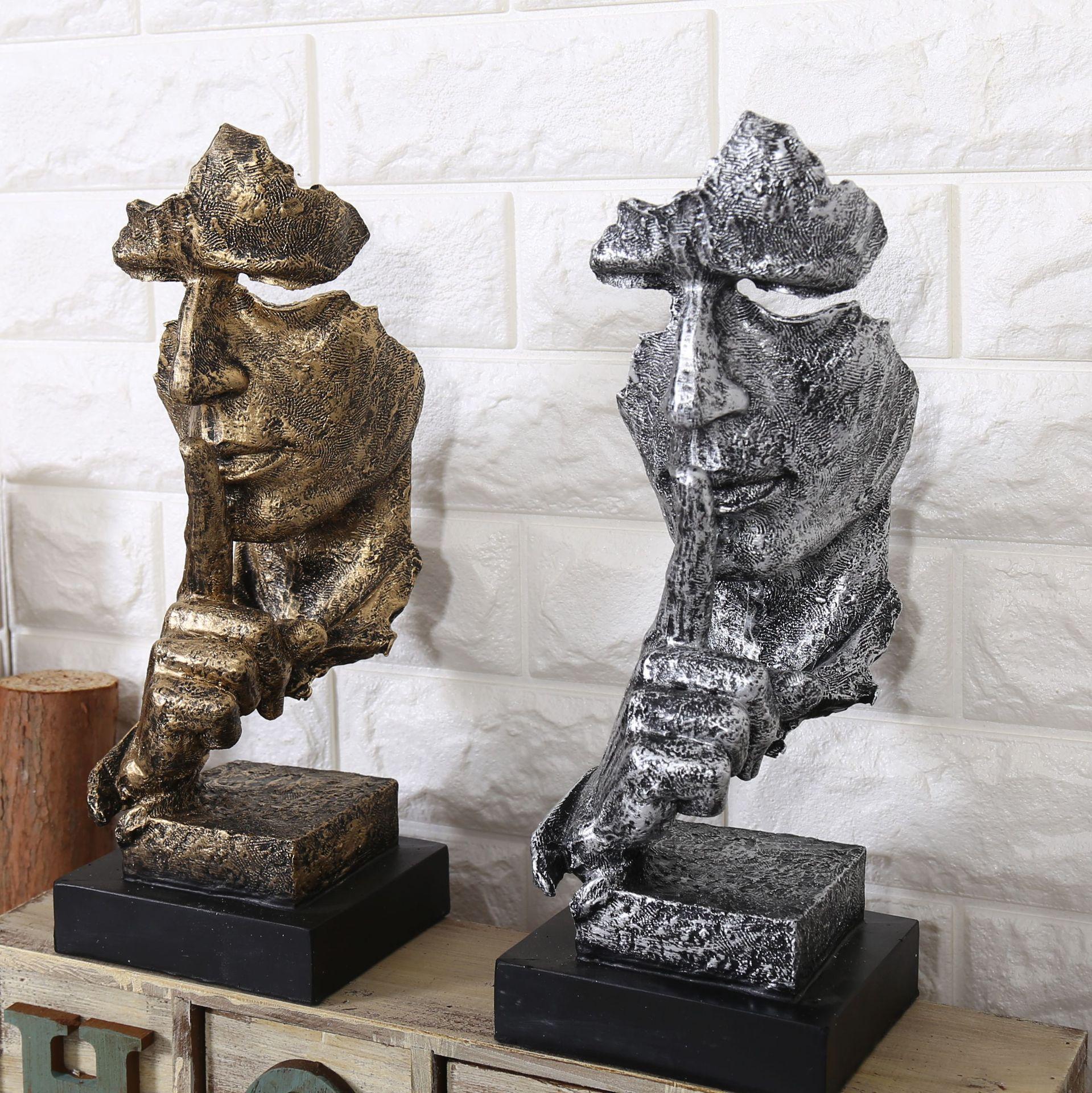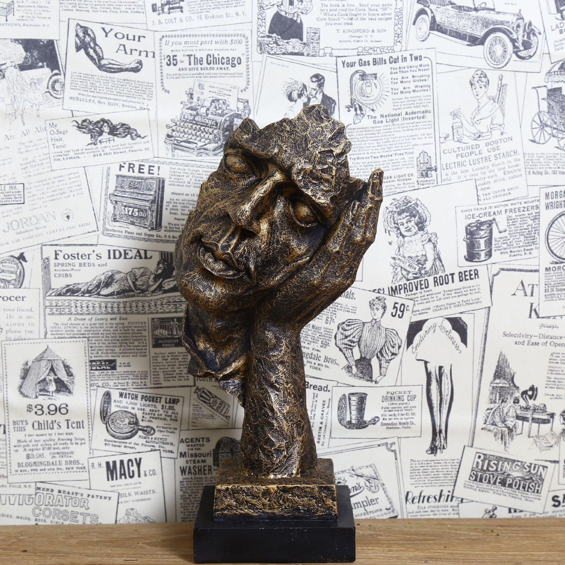 Escultura dorada silenciosa, adornos artesanales de resina vintage, decoración creativa para sala de estar, 16324