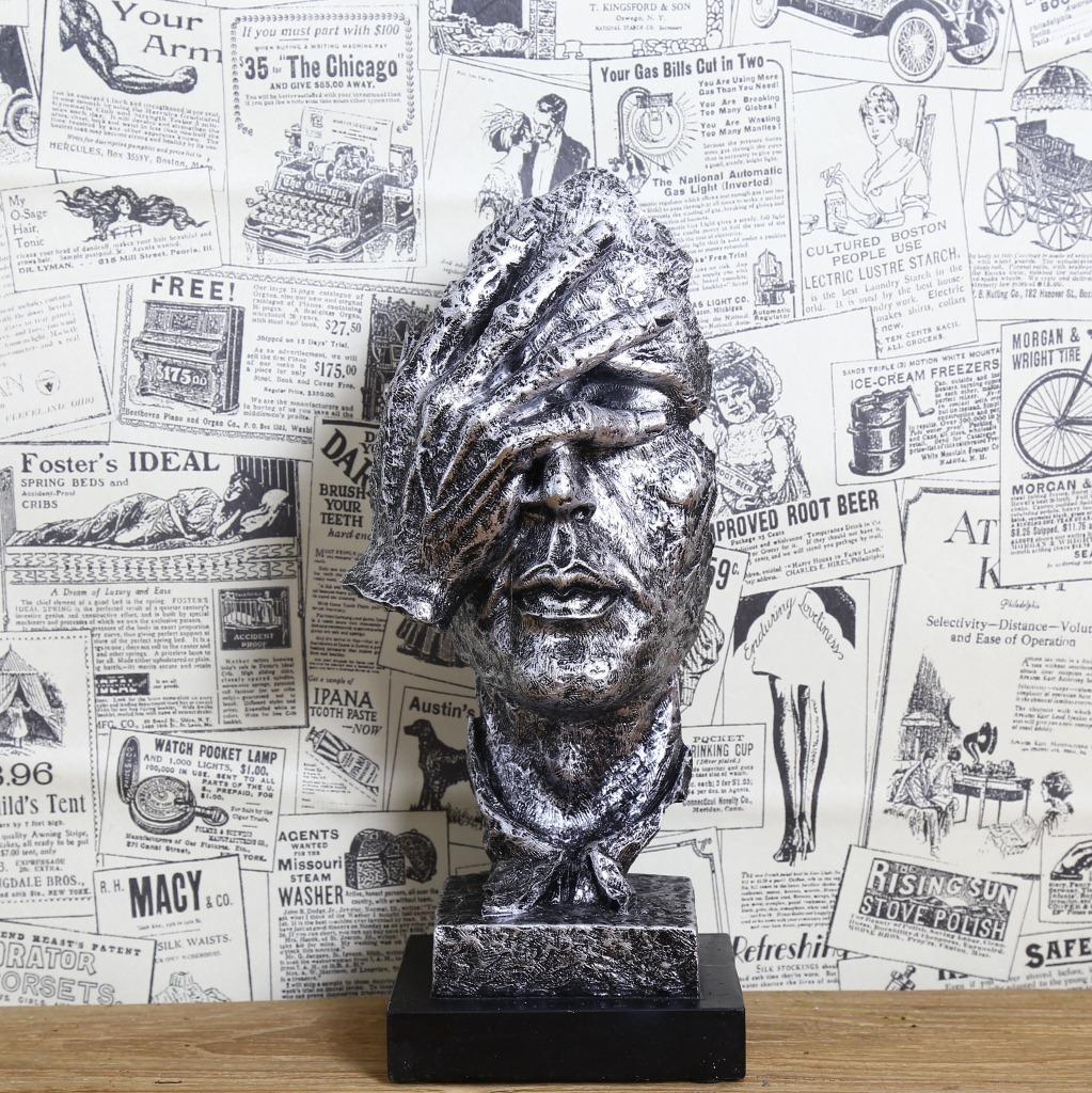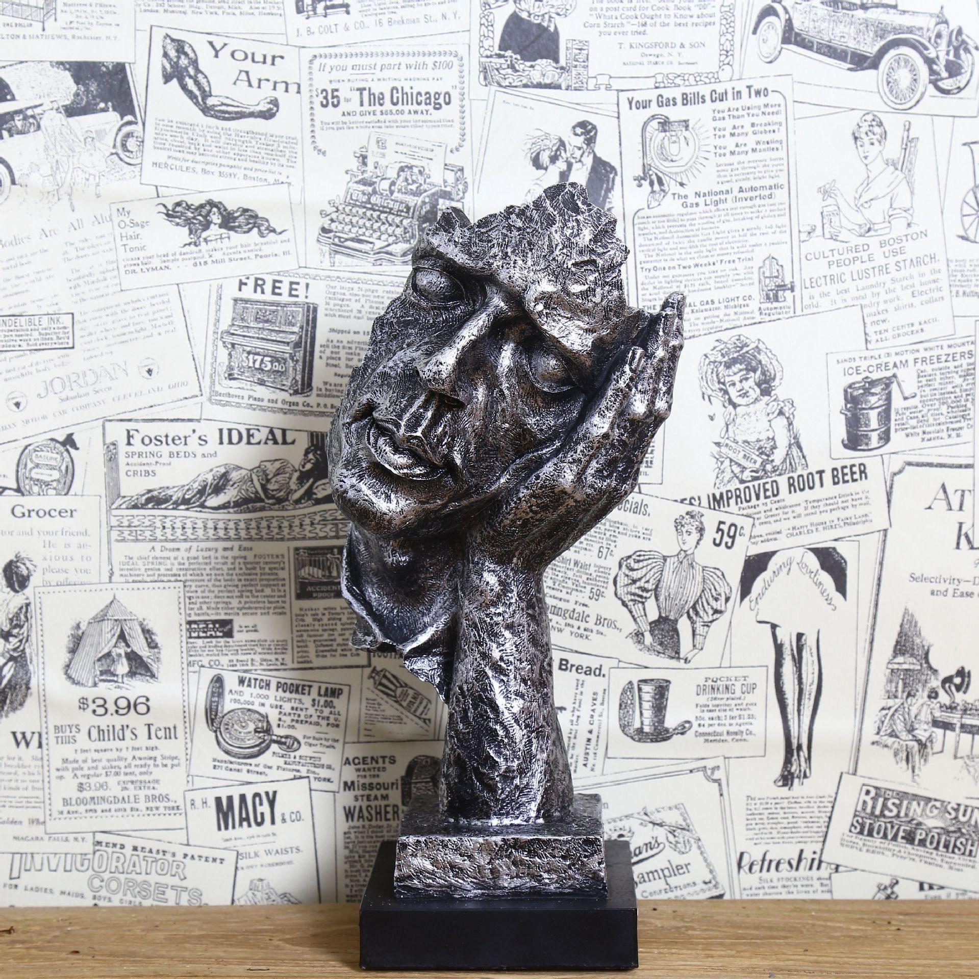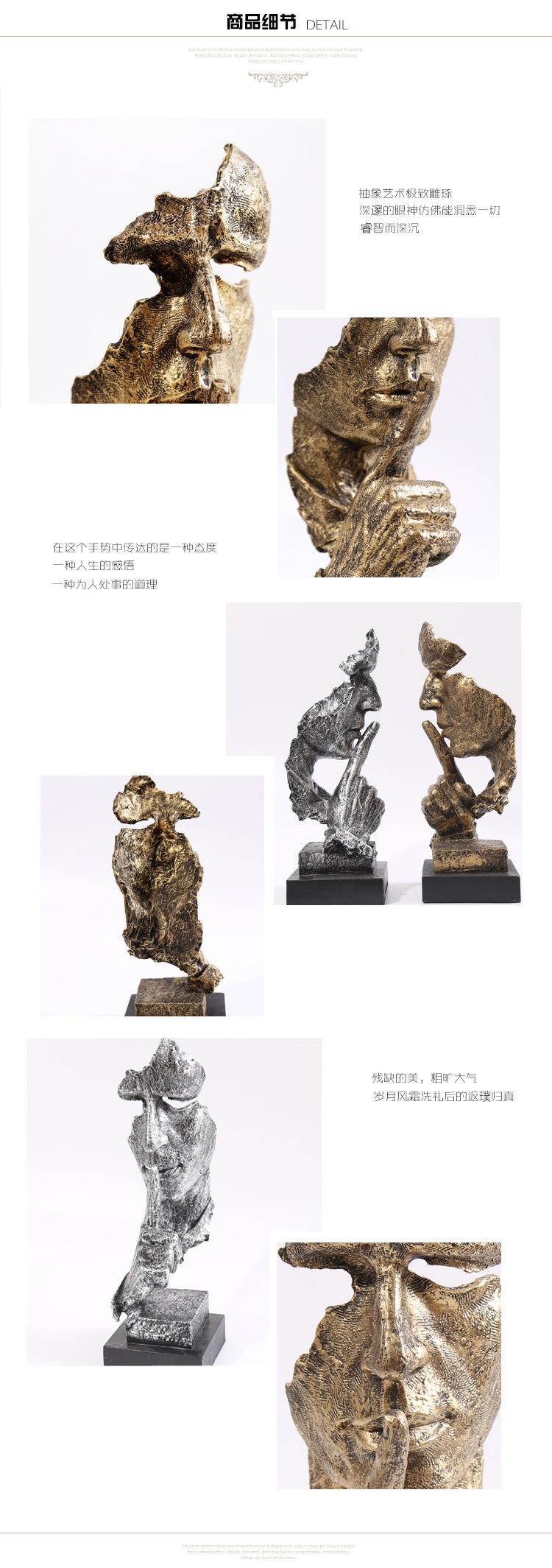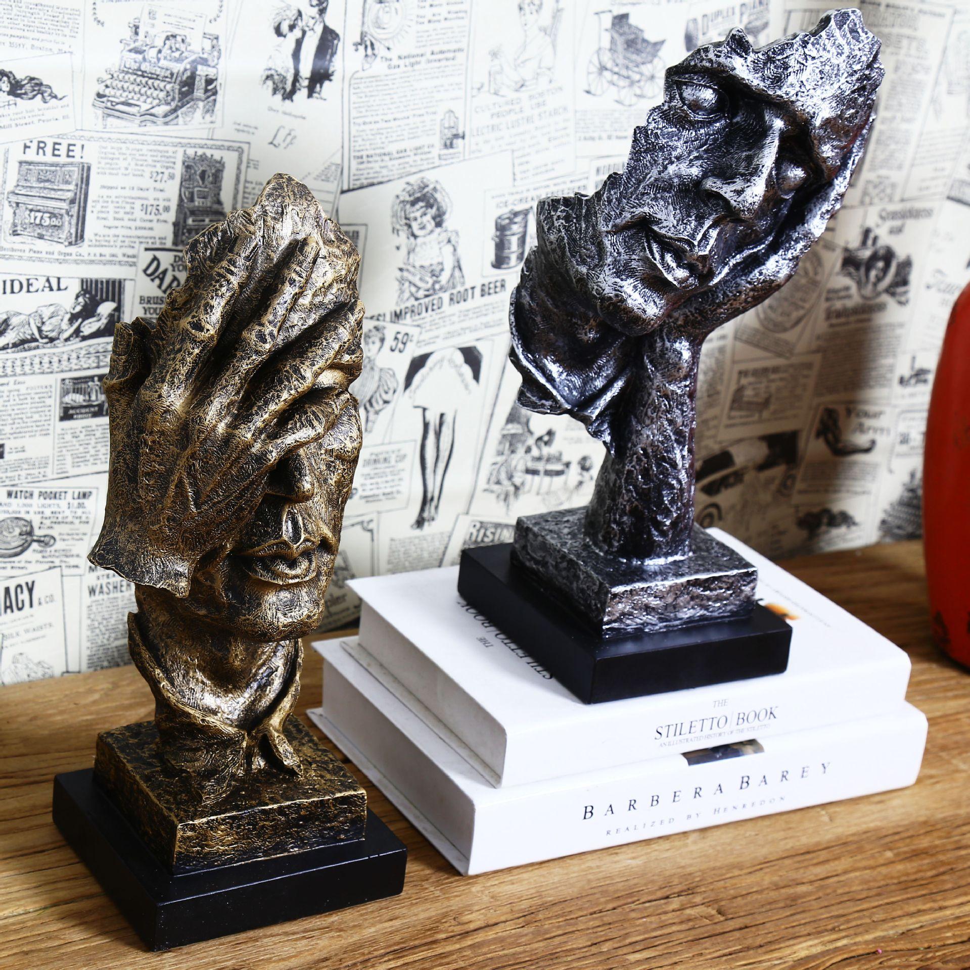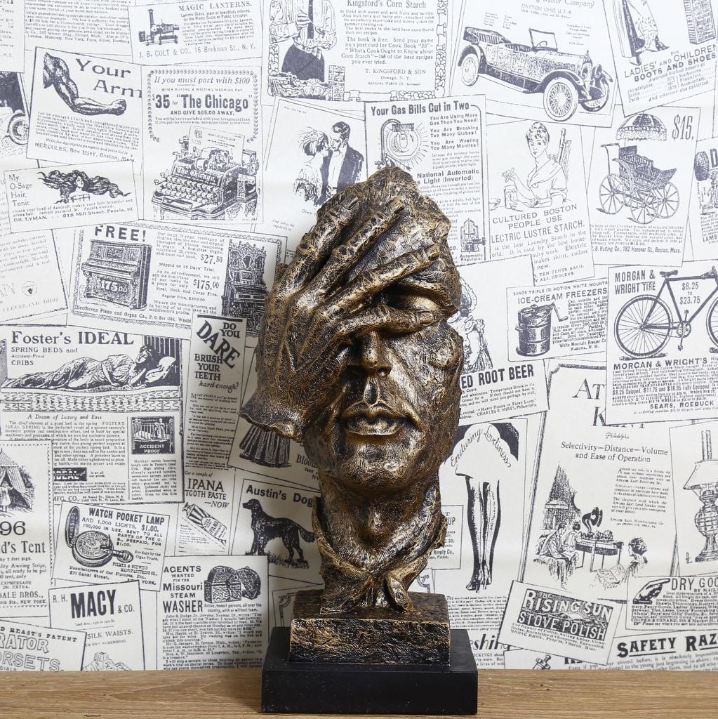Escultura dorada silenciosa, adornos artesanales de resina vintage, decoración creativa para sala de estar, 16324