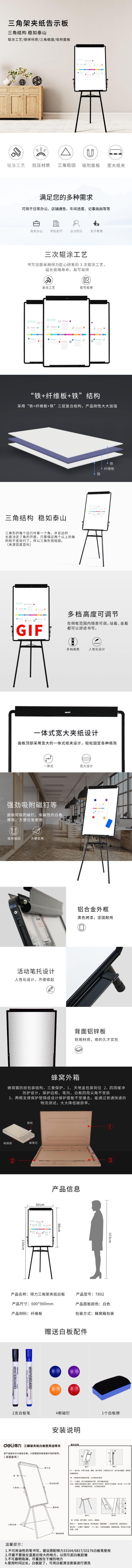 Pizarra blanca para reuniones Deli 7892, con trípode, de fibra magnética, 60 x 90 cm
