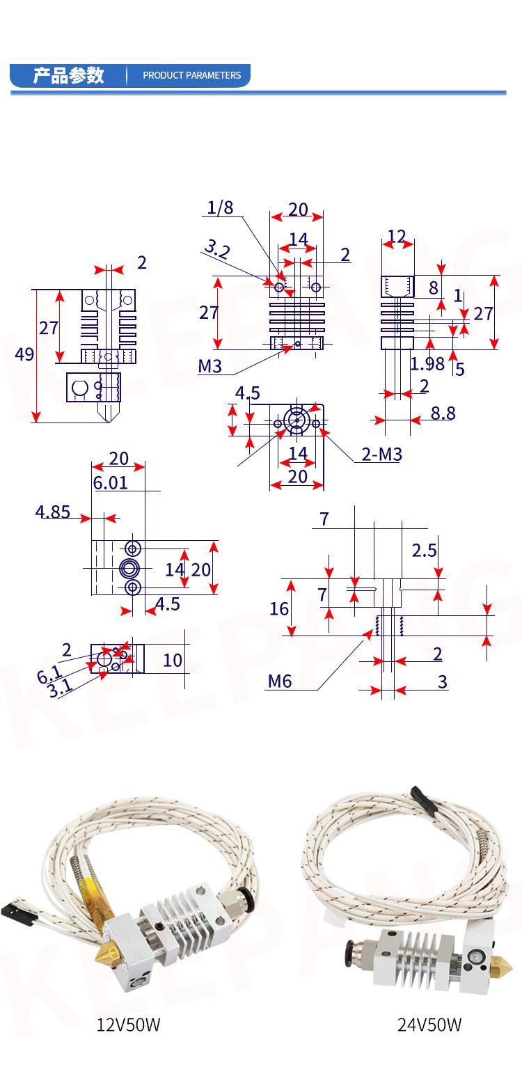 1.75/0.4mm(12v50w Kit), 1.75/0.4mm(24v50w Kit), Seven-piece set thermistor without heating rod