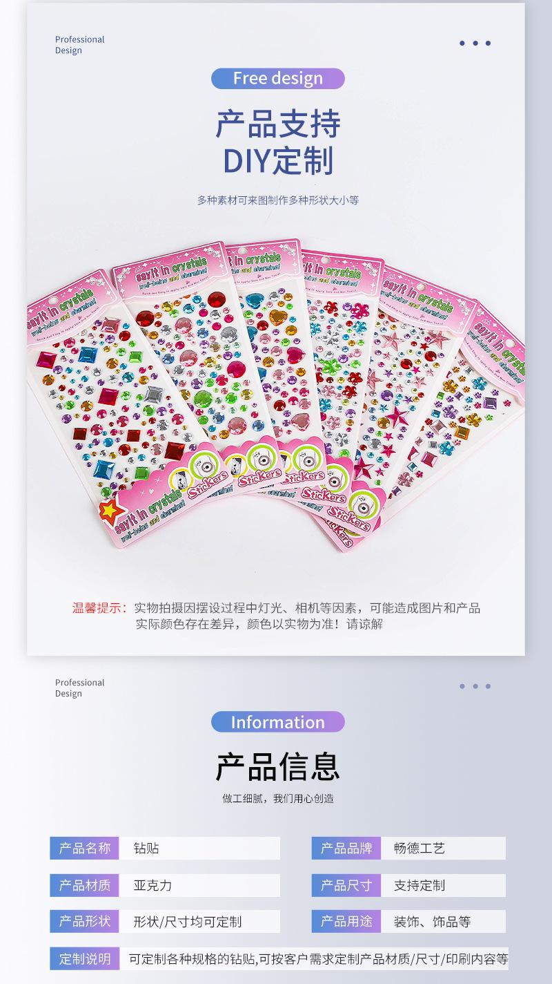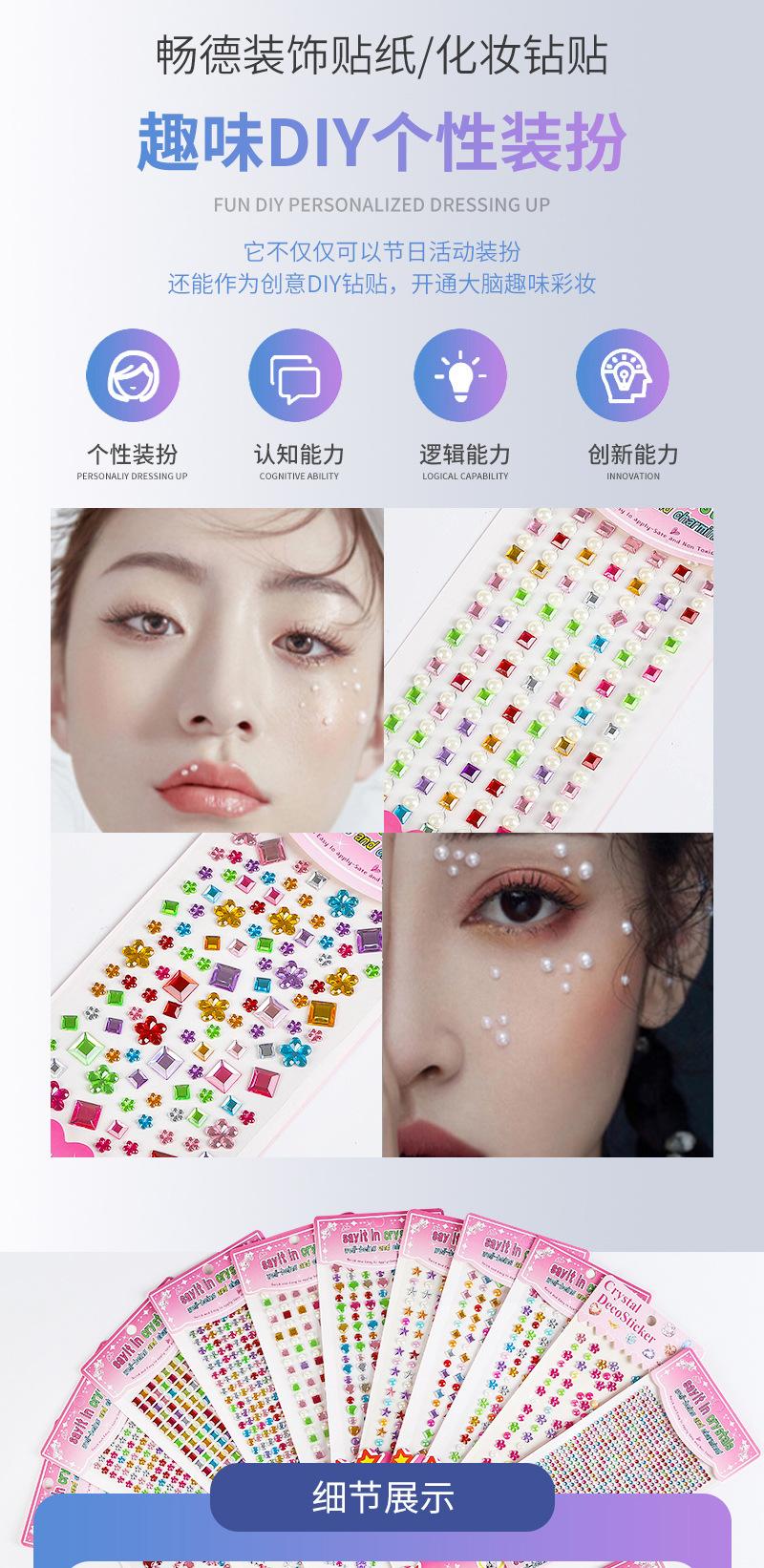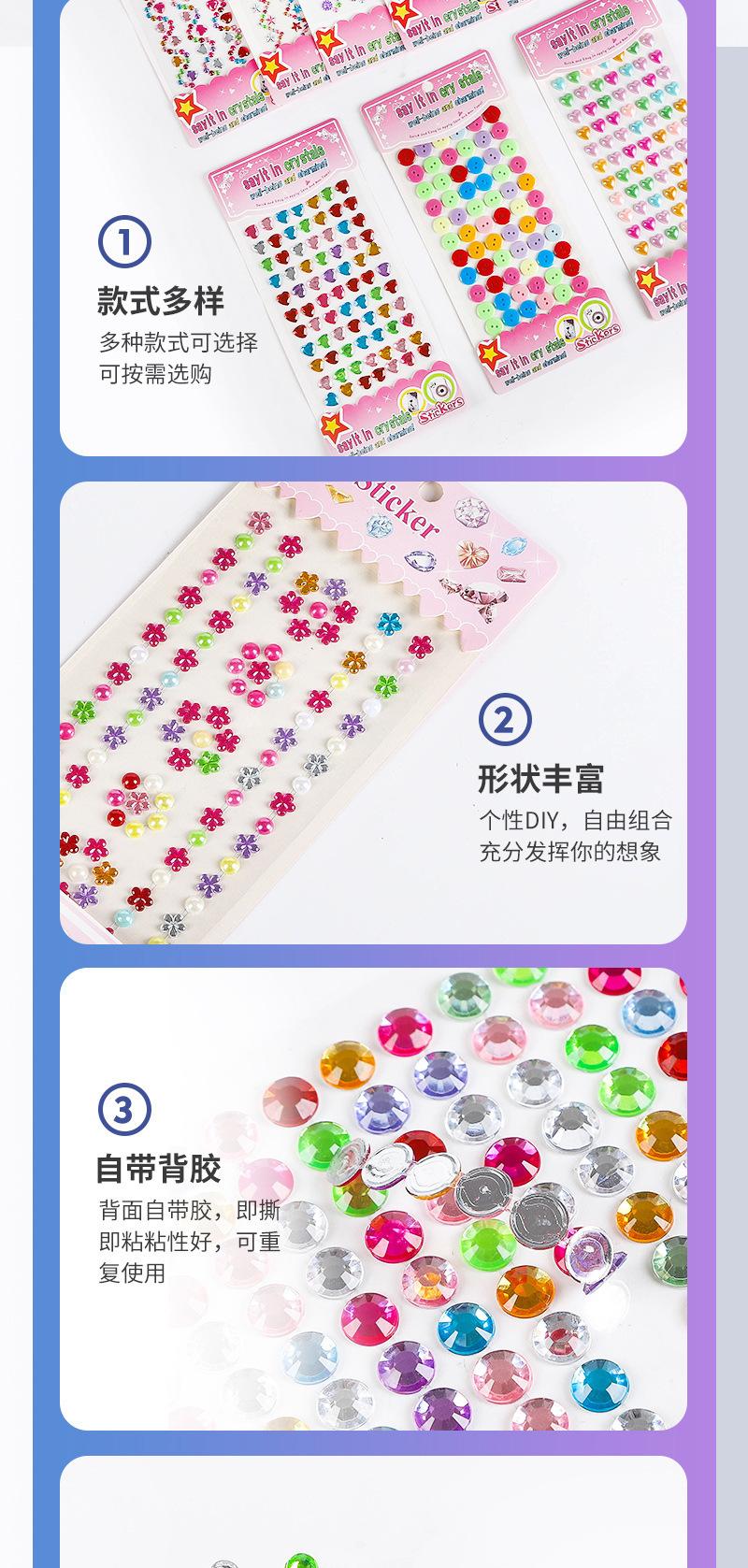 Pegatina de diamante de cristal para niños, pegatina de diamante de colores, decoración acrílica, pasta de maquillaje facial para bebés de jardín de infantes