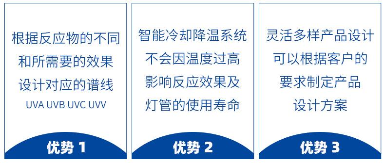 1. Fuente de luz: Equipado con condiciones de trabajo de lámpara de mercurio de 300w-30kw, longitud de onda 254nm/302nm/365nm... y otras longitudes de onda son opcionales, lámpara de mercurio, lámpara de xenón, lámpara de halogenuros metálicos y otras fuentes de luz son opcionales.