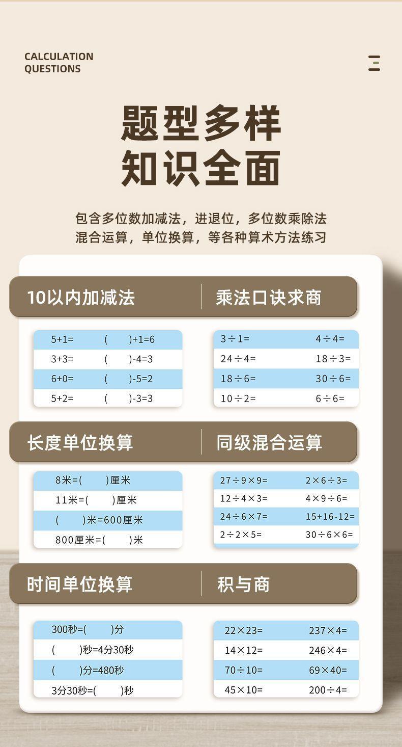 Cuaderno de ejercicios de multiplicación y división de nueve por nueve, suma y resta, cálculo oral, tarjeta de problemas 1234, matemáticas para estudiantes de segundo grado de primaria, cálculo rápido