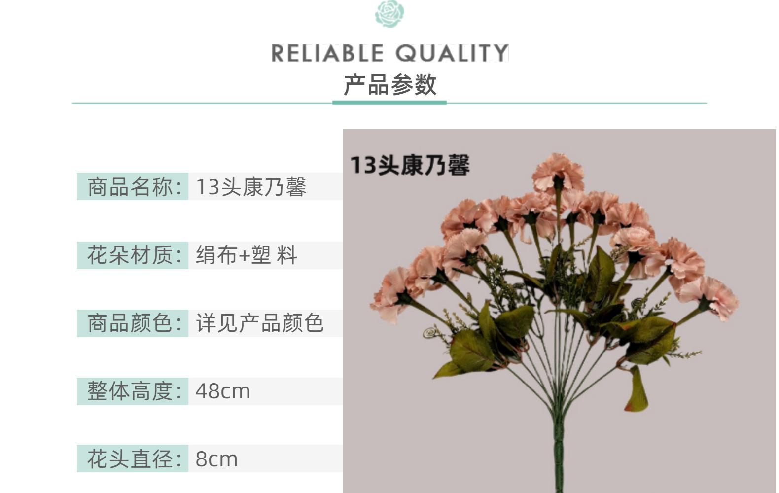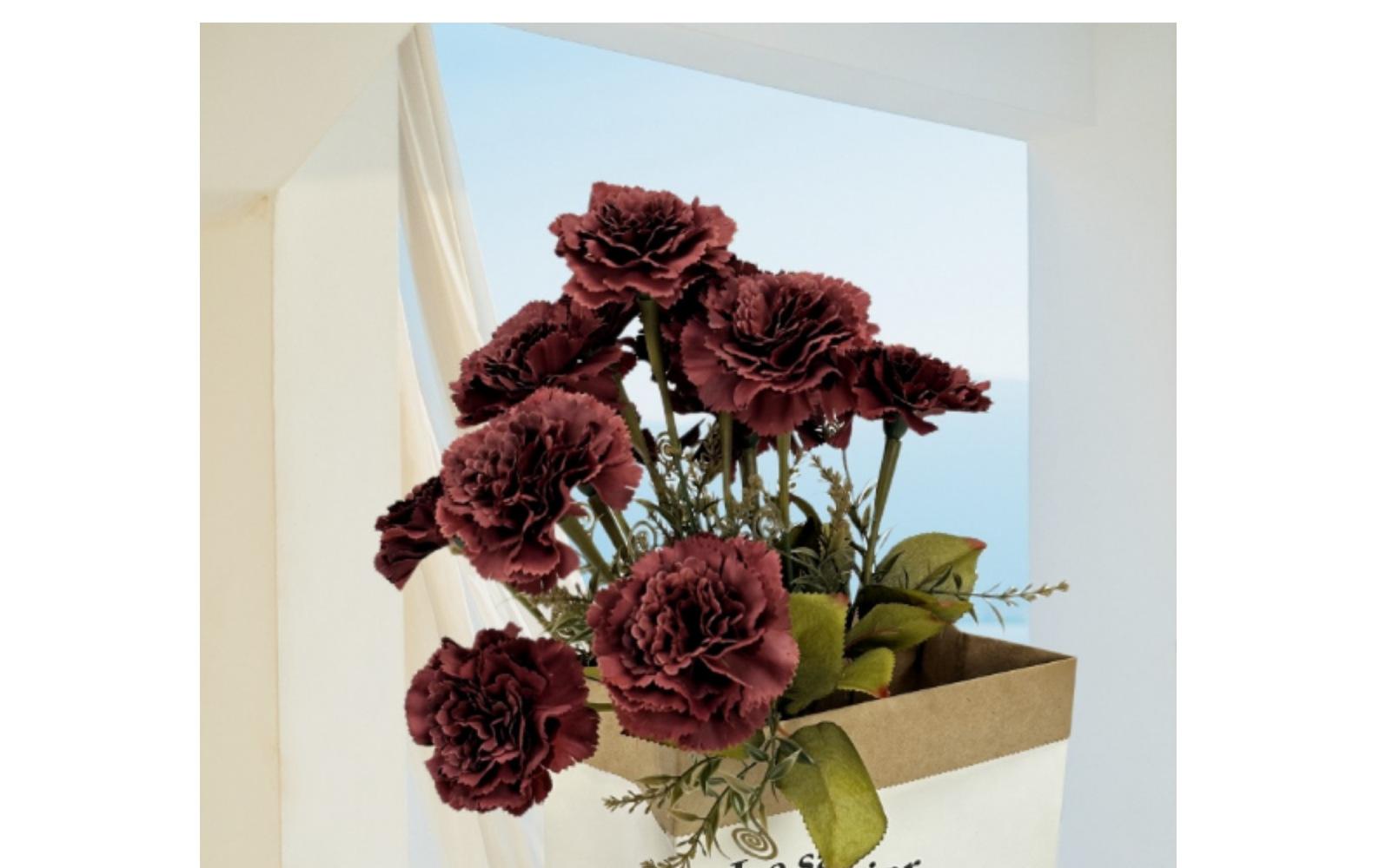Ramo de claveles de 13 cabezas de imitación para casa, hotel, vestido de novia, flores de seda artificiales, venta al por mayor