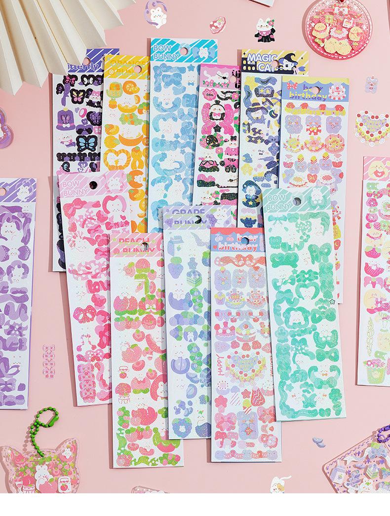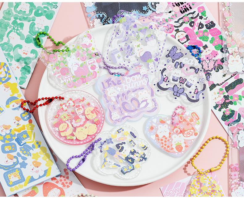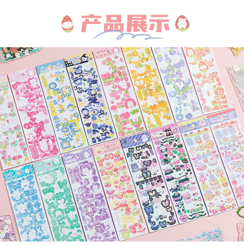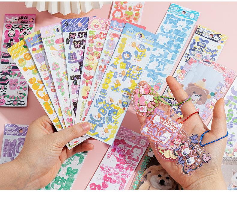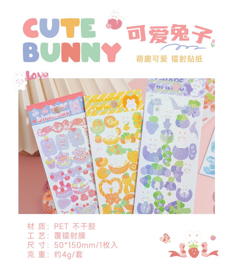 Pegatinas de PVC impermeables con forma de mano de Goka láser de la serie Conejo, material animal, pegatinas de papelería coreanas para hacer tú mismo