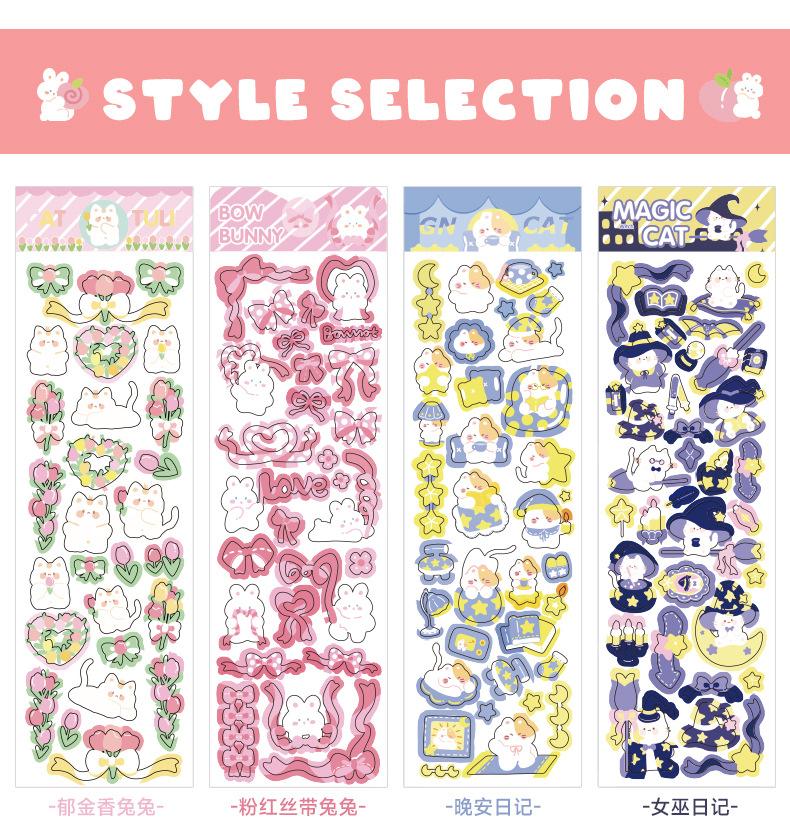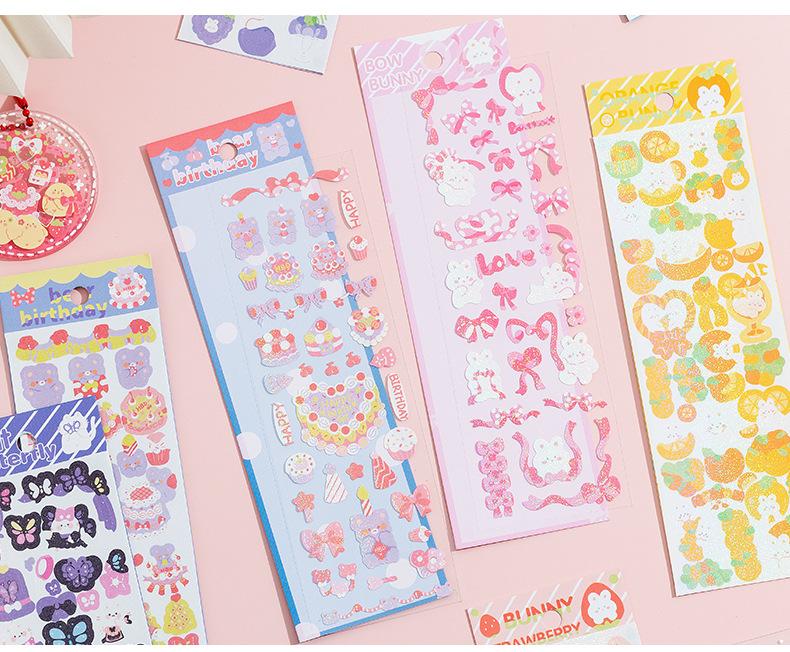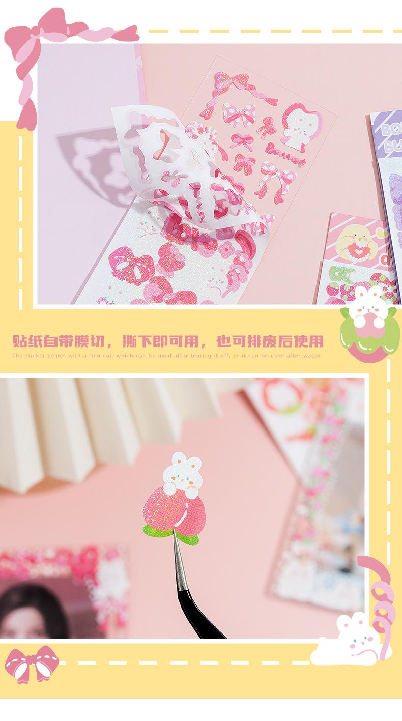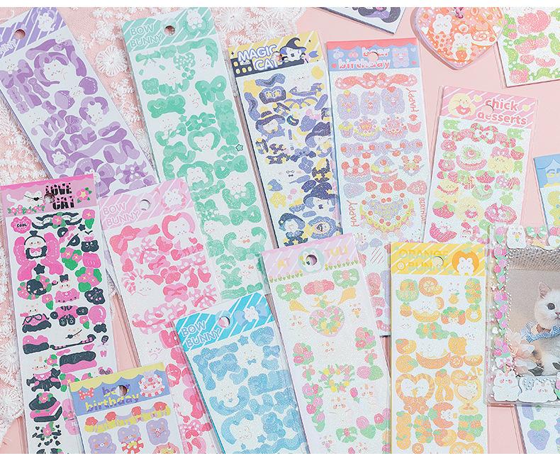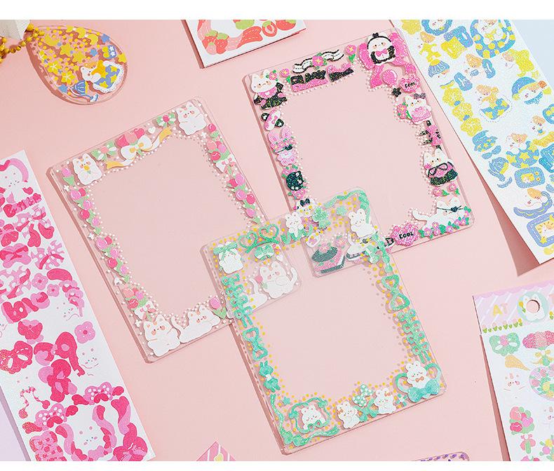 Pegatinas de PVC impermeables con forma de mano de Goka láser de la serie Conejo, material animal, pegatinas de papelería coreanas para hacer tú mismo