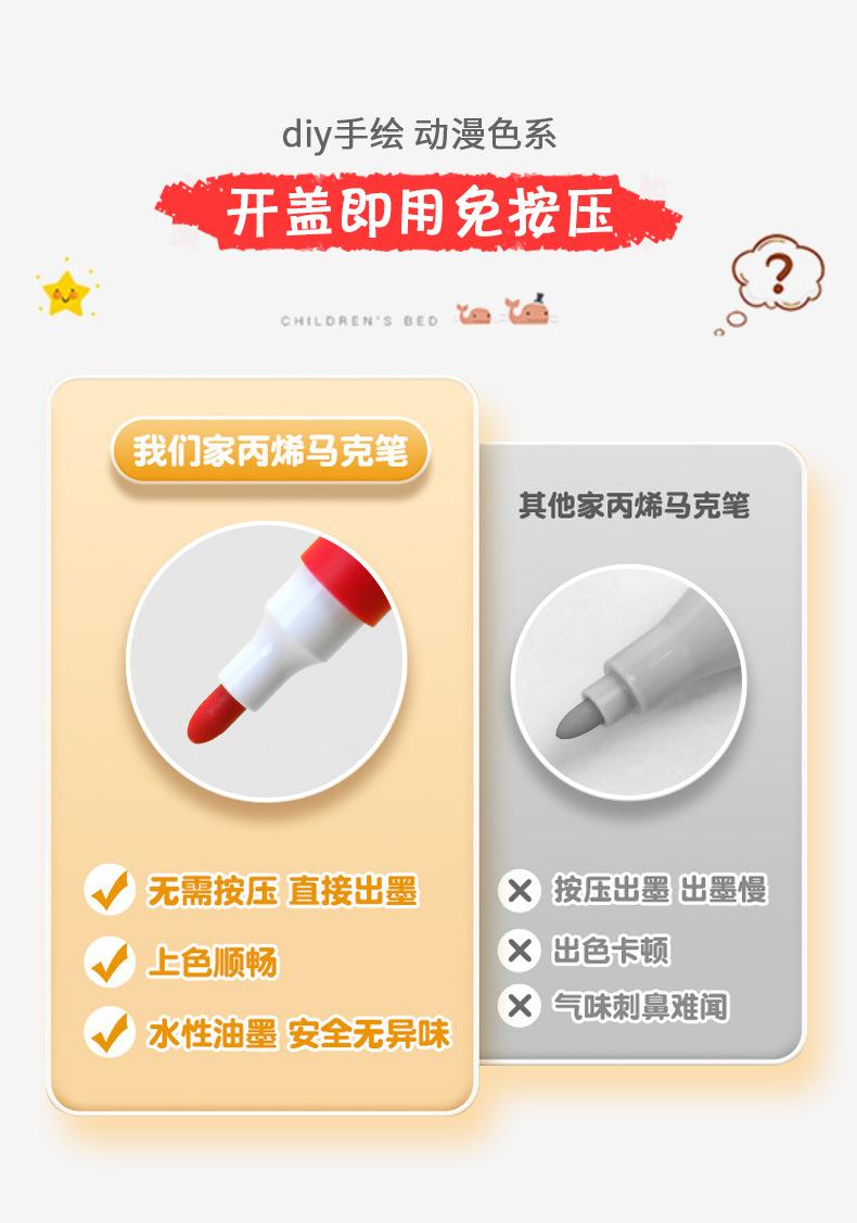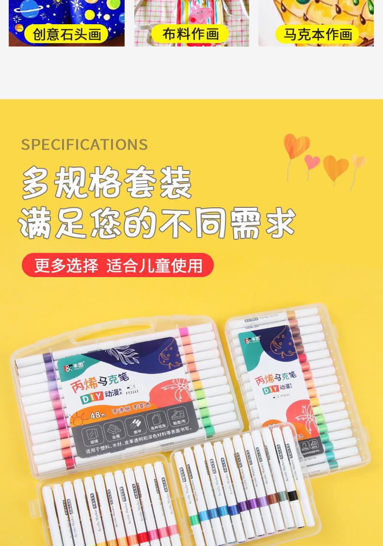 Marcador acrílico resistente al agua para niños, bolígrafo para colorear, pintura DIY, 12/24/36/48 colores, marcador de pintura artística