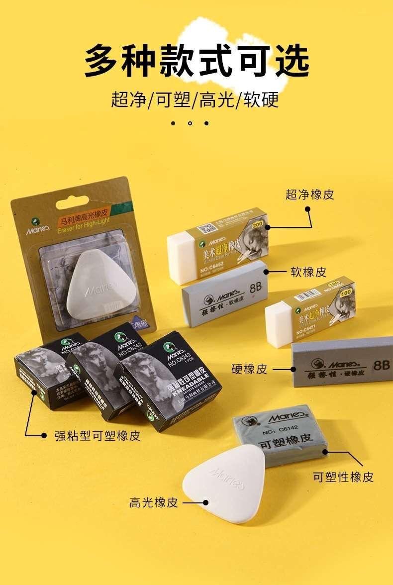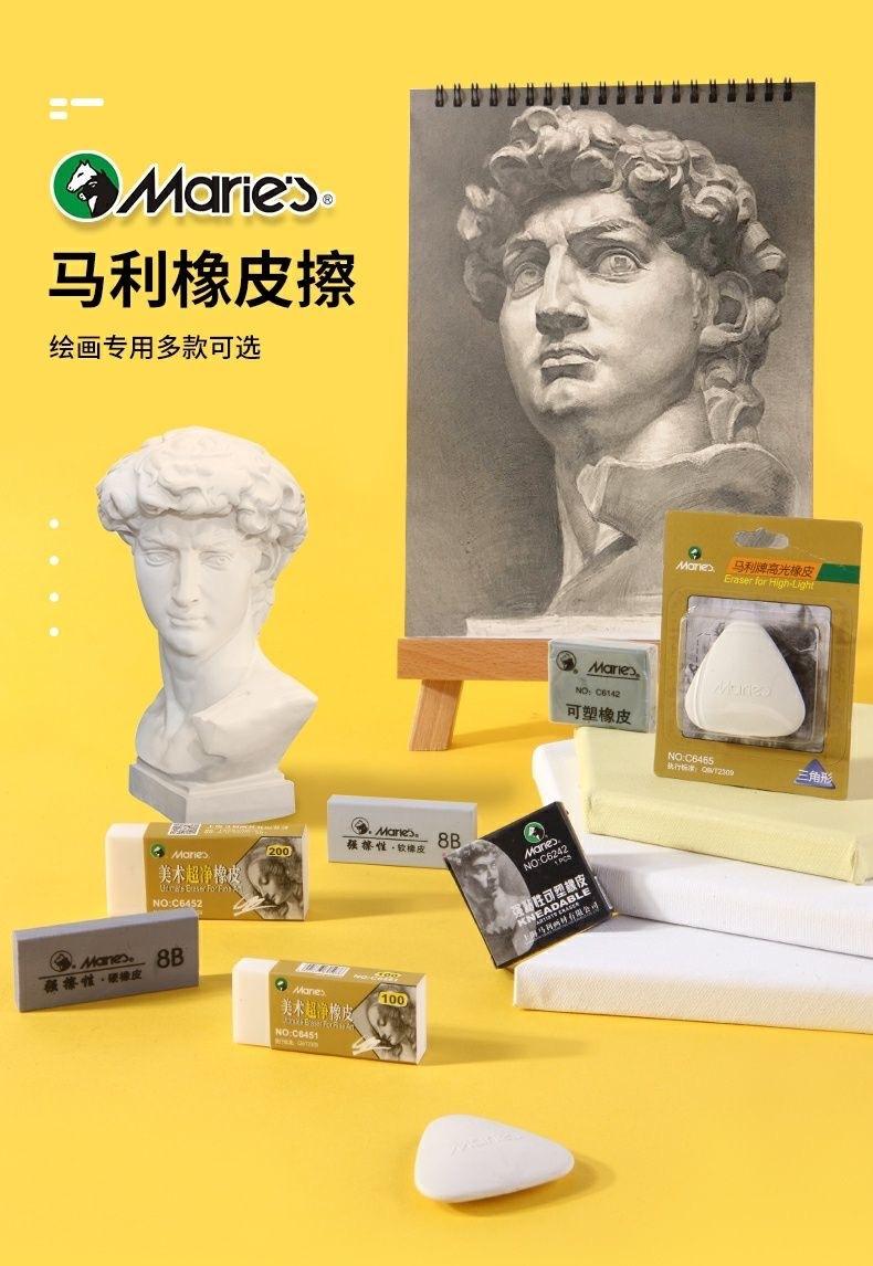 Marley - Goma profesional para dibujo, bocetos, pintura, arte, 8B, goma dura, goma plástica, goma de alto brillo, goma superlimpia