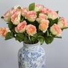 Rosa grande de 3 cabezas rosa diamante individual flor de fila para escenario de boda flor de seda flor artificial para paisaje de área de bienvenida de boda