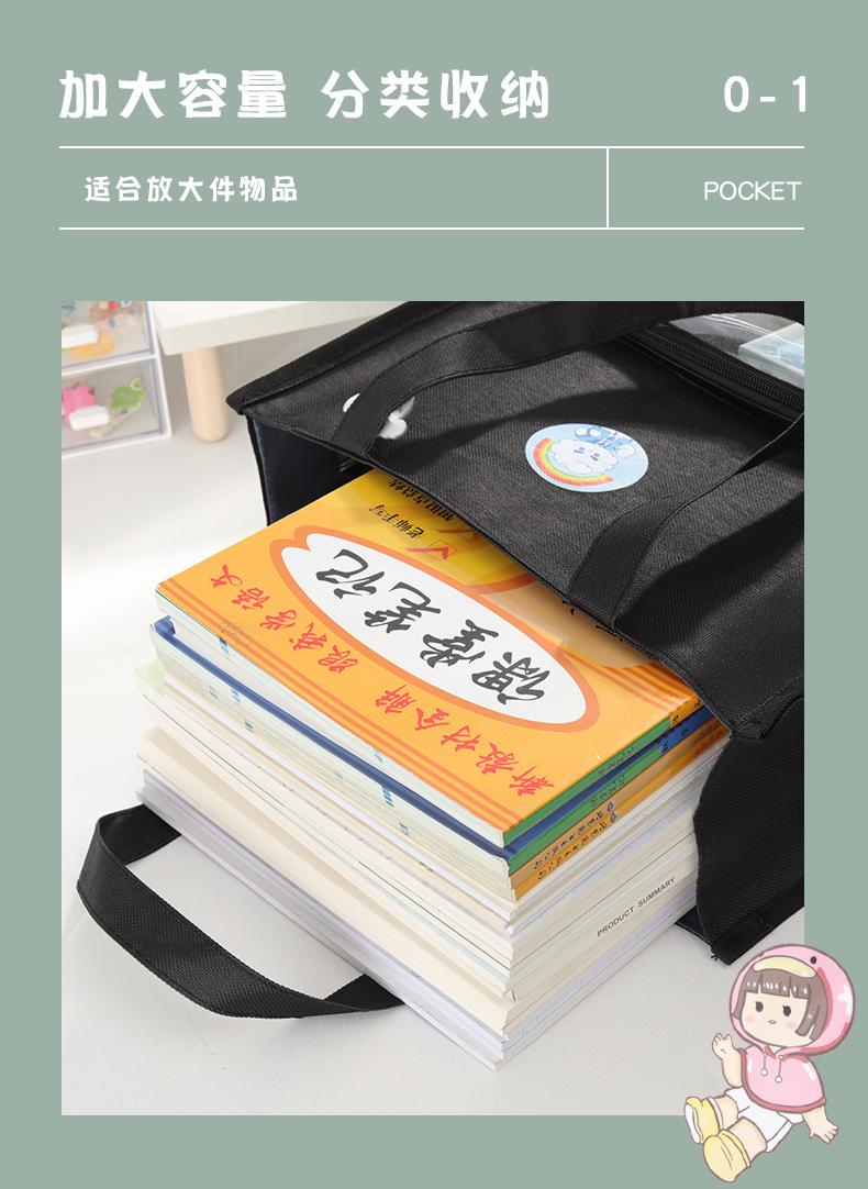Bolso tridimensional Kangbai para estudiantes, gran capacidad, bolsa tutorial, bolsa de estudio, almacenamiento simple de doble capa, dedicado para oficina y examen