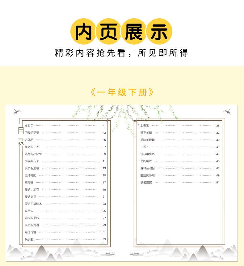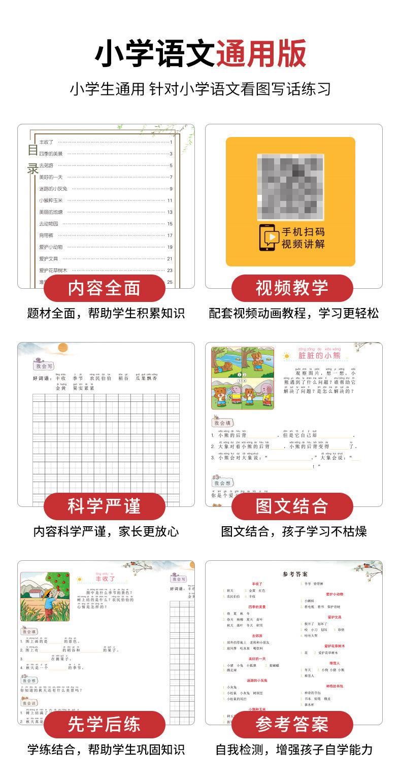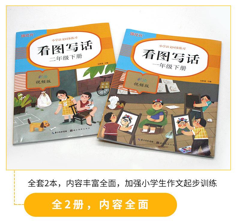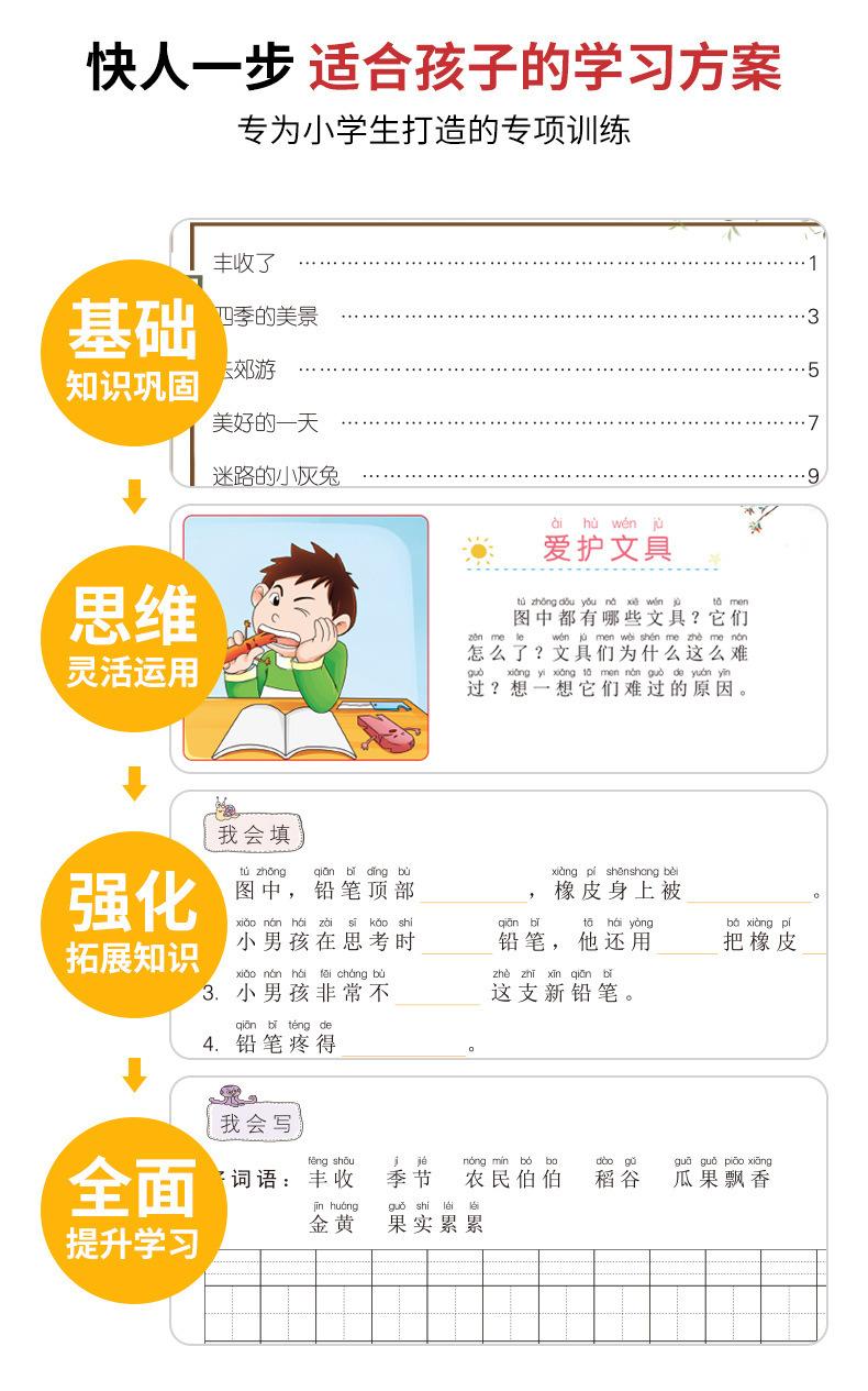 Práctica sincrónica de chino en primaria, primer y segundo grado, segundo volumen, lectura de imágenes, escritura de palabras, entrenamiento de composición, expresión oral especial y lectura, 2 volúmenes