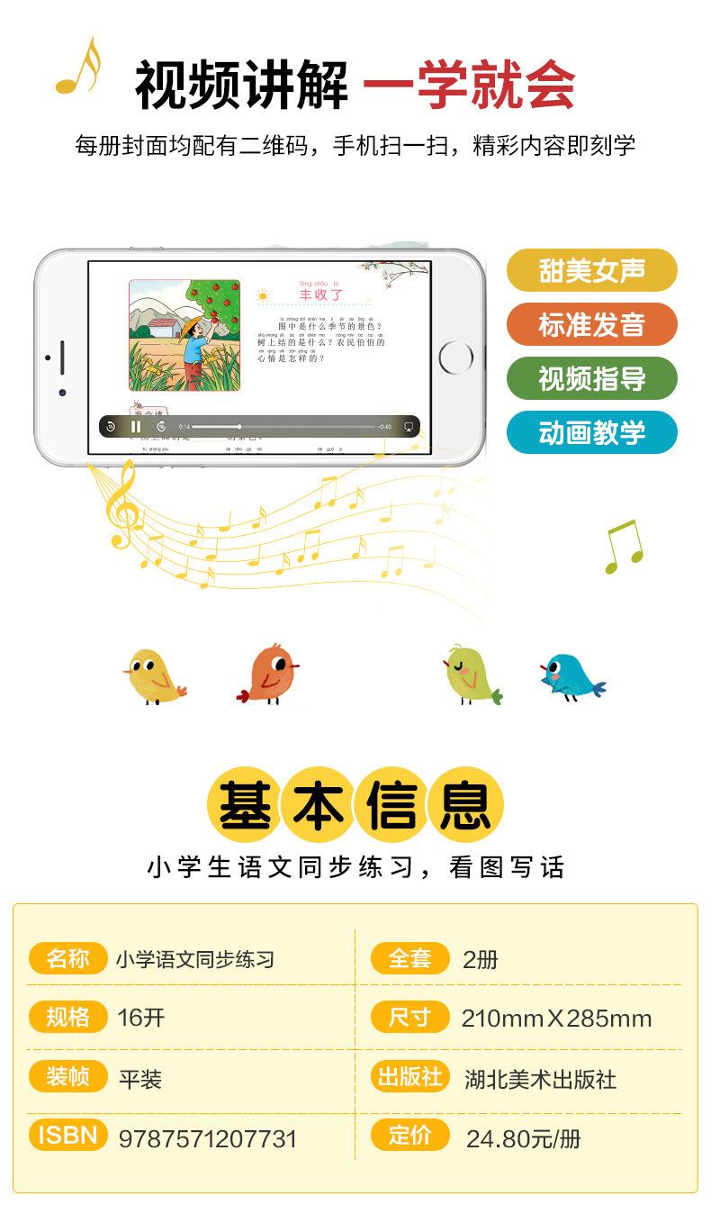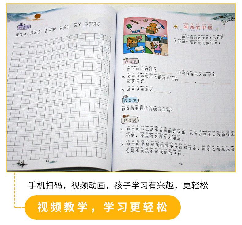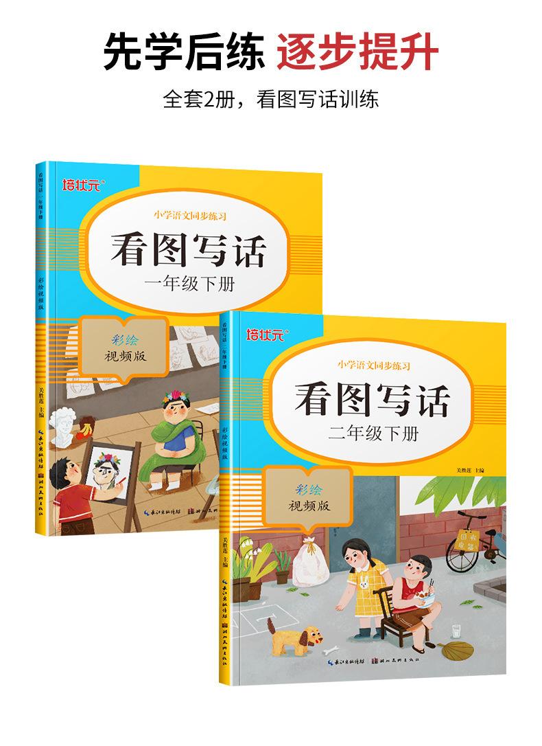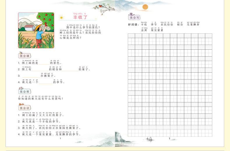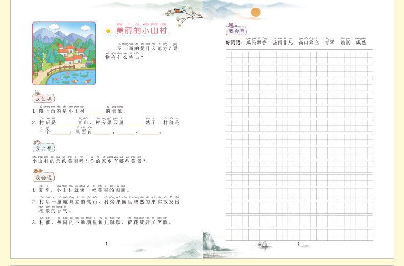 Práctica sincrónica de chino en primaria, primer y segundo grado, segundo volumen, lectura de imágenes, escritura de palabras, entrenamiento de composición, expresión oral especial y lectura, 2 volúmenes