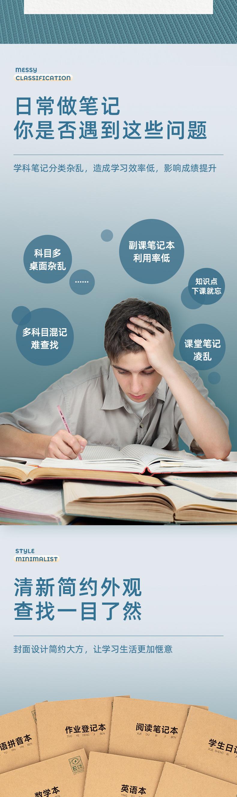 Wrong Topic, Job Register, English book, Read Notebook, Chinese Pinyin, Student diary, Exercise Book, Composit...