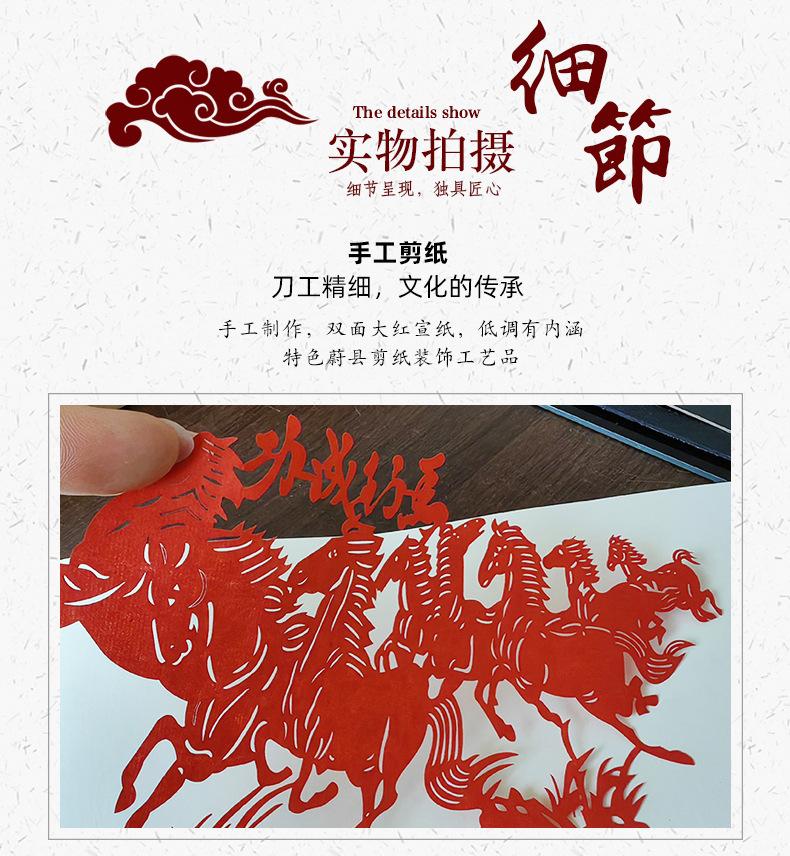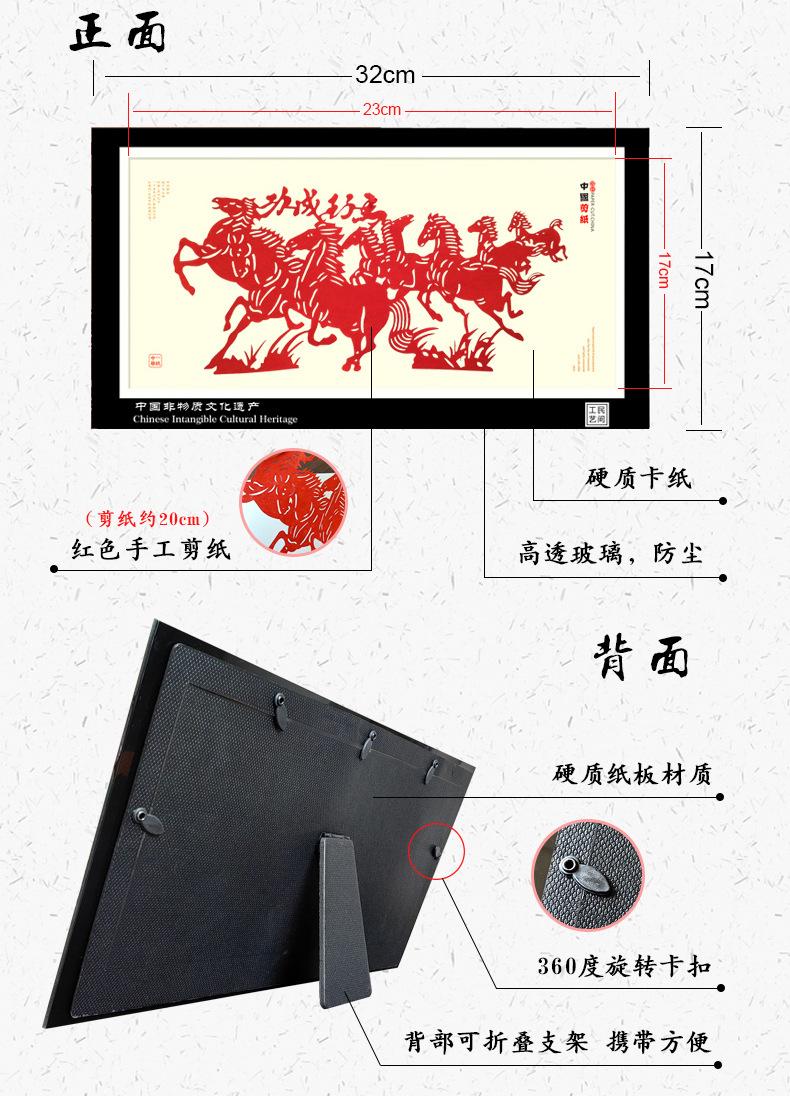 Estilo Chino especial hecho a mano recorte de papel pintura decorativa marco de fotos de vidrio caballo al éxito año del Dragón flor de ventana artesanía regalo