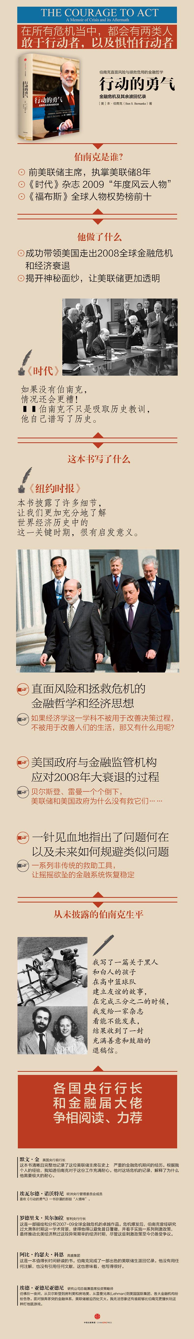 "El coraje para actuar, la filosofía financiera de enfrentar riesgos y rescatar crisis de Ben Bernanke, la Persona del Año de Time y expresidente de la Reserva Federal, es una revelación directa y una reflexión sobre la historia interna de la redención de la crisis. Gobernadores de bancos centrales y líderes financieros de varios países están ansiosos por leerlo y recomendarlo. Es una obra maestra financiera que no debería perderse en 2016."