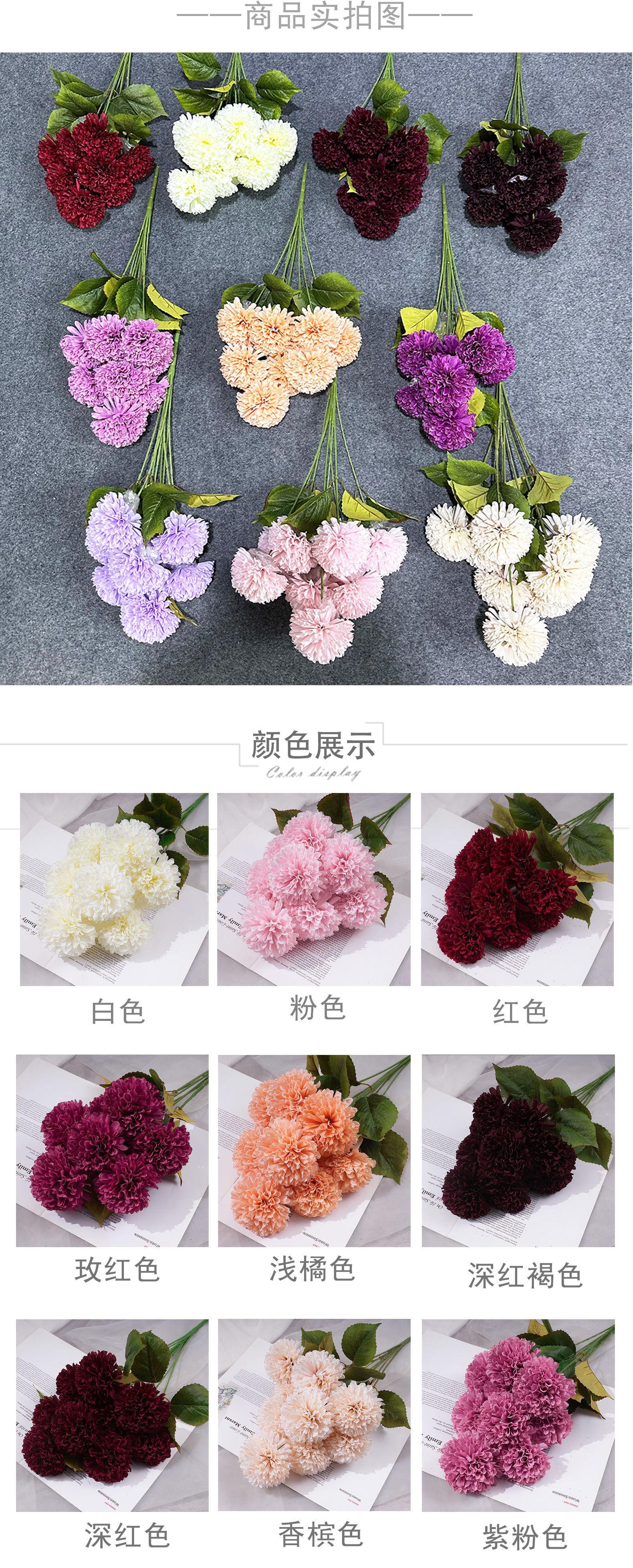 Crisantemo de Mesa de 9 Cabezas Flor Artificial Boda Salón de Bodas Flor de Camino Material Decoración Fotografía Sala de Estar Hogar
