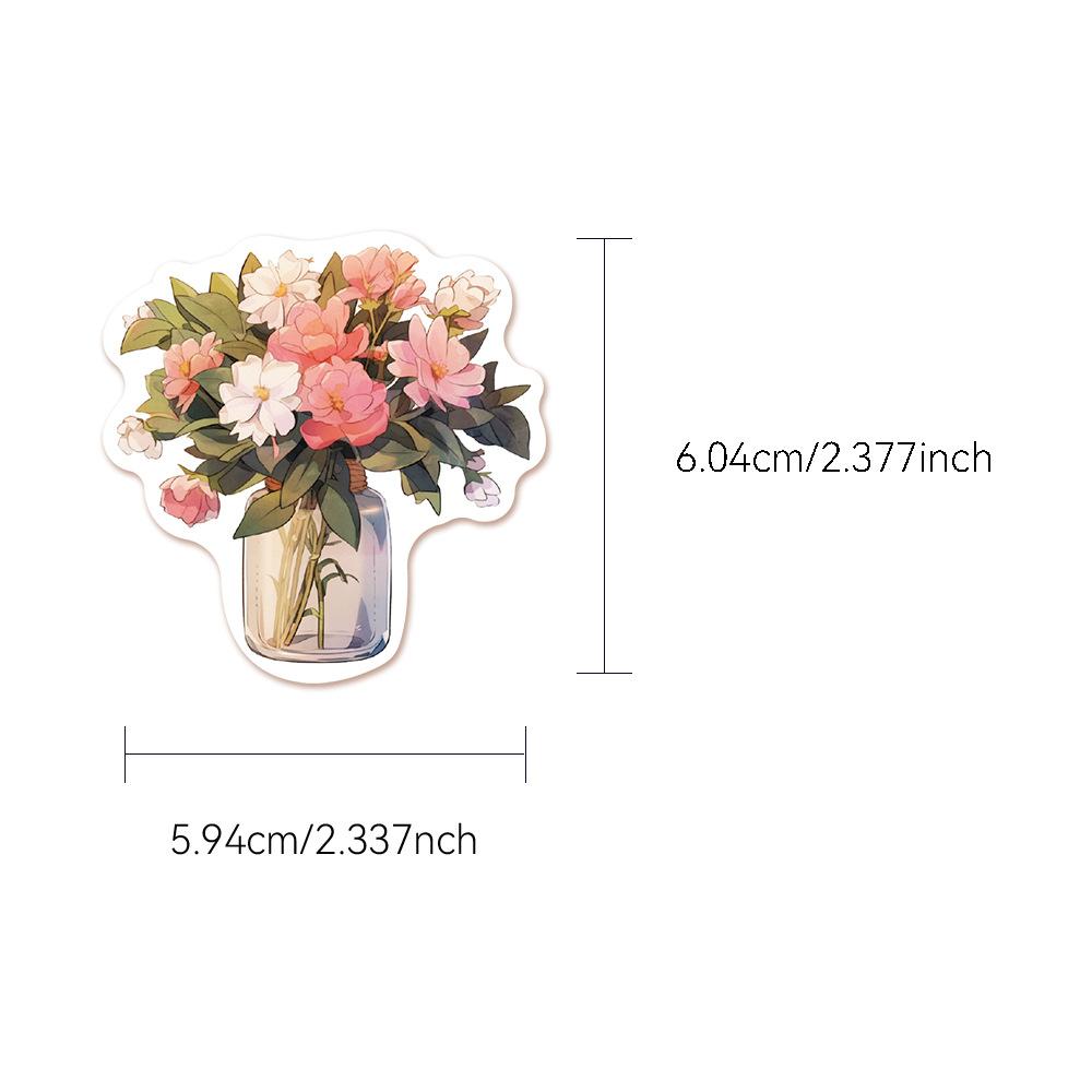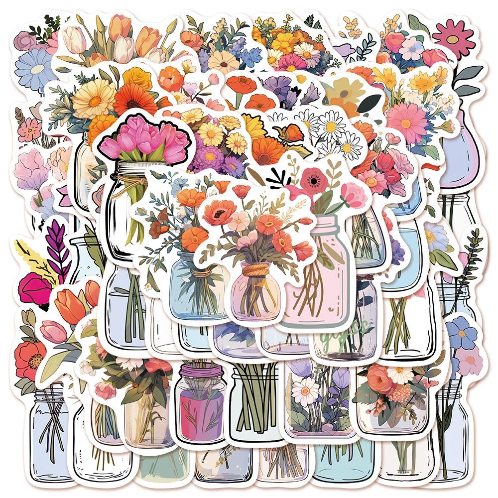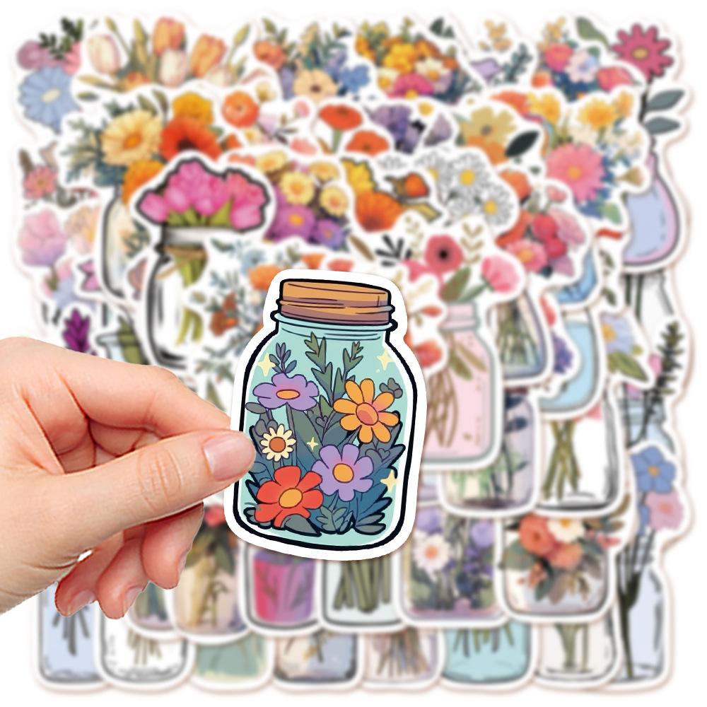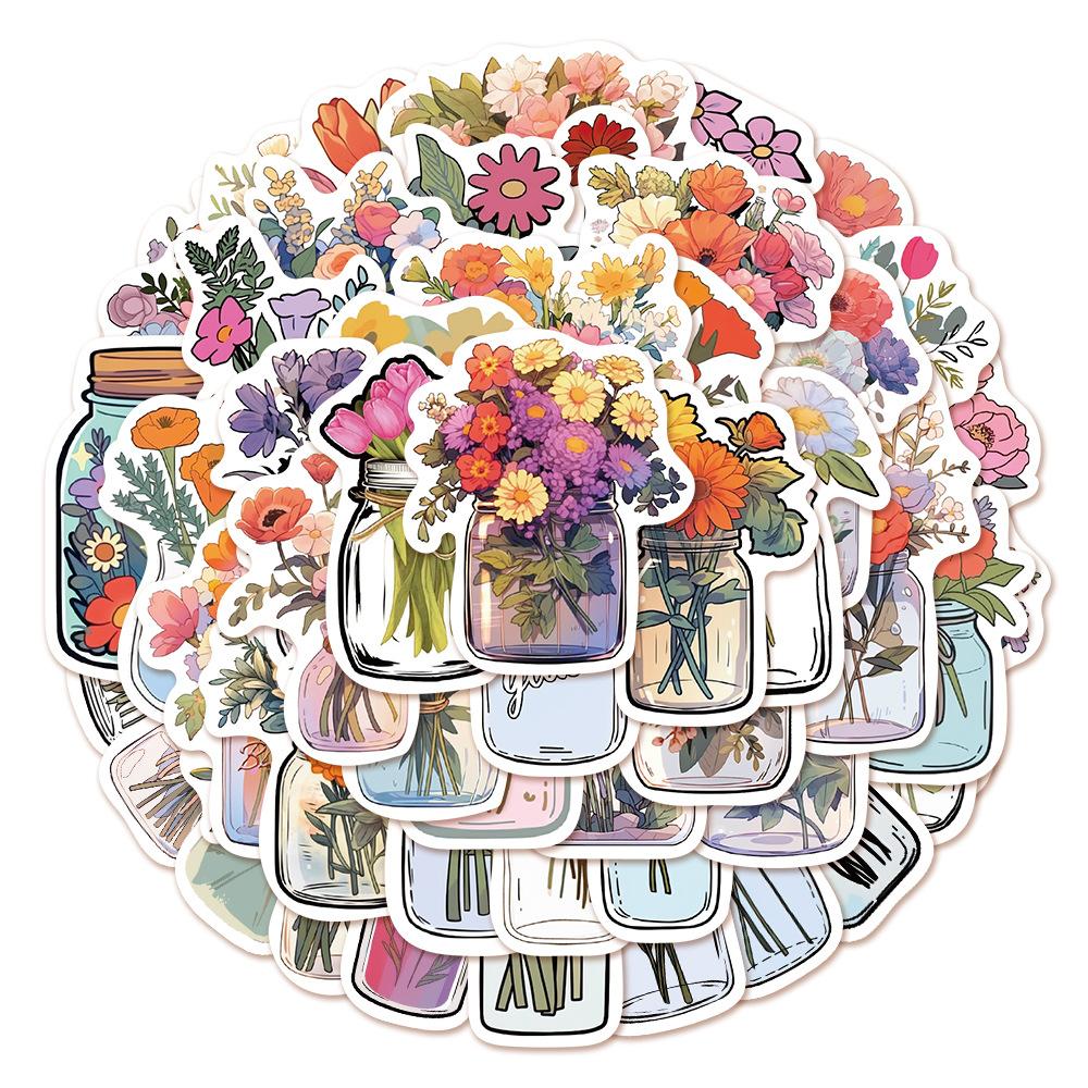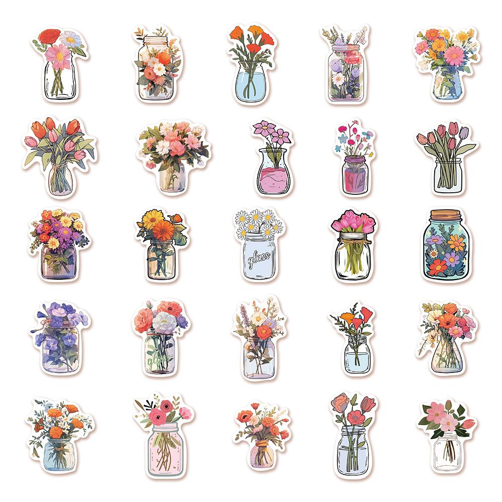 50 pequeñas pegatinas de flores frescas en una botella para portátil, notebook, teléfono móvil, pegatinas decorativas DIY con bordes transfronterizos.
