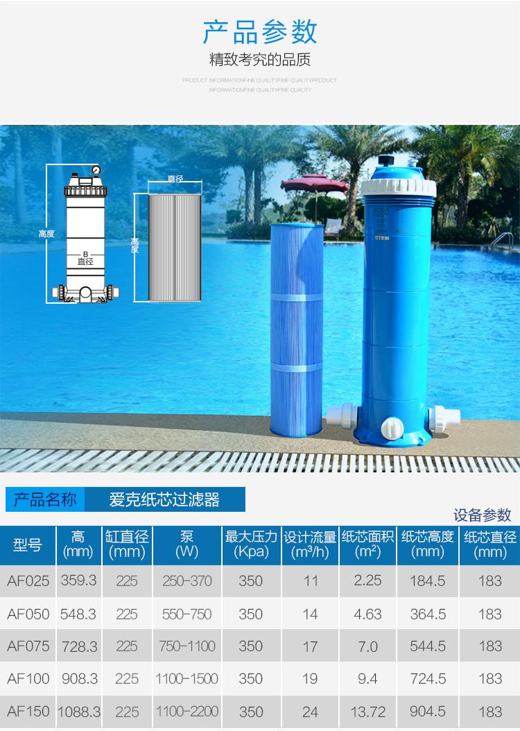 Filtro de núcleo de papel AQUA cilindro de fibra de poliéster equipo de filtro para piscina, baño, piscina para bebés Serie AF