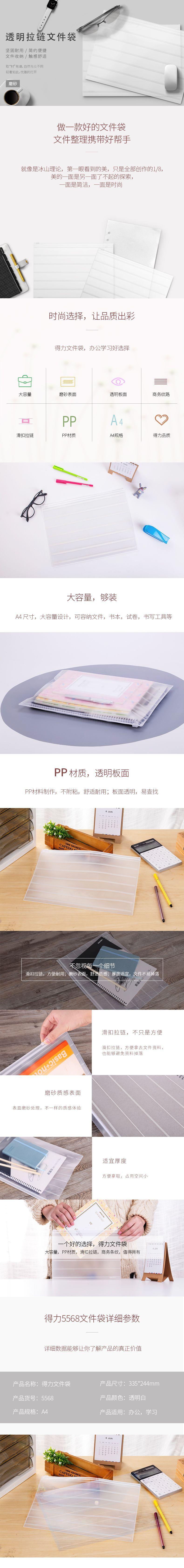 Deli 5568 Carpeta de Archivo con Tira Horizontal de Apertura Lateral A5/A4 Bolsa de Información Transparente Almacenamiento Impermeable para Estudiantes Bolsa con Cremallera