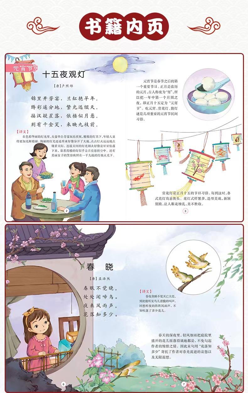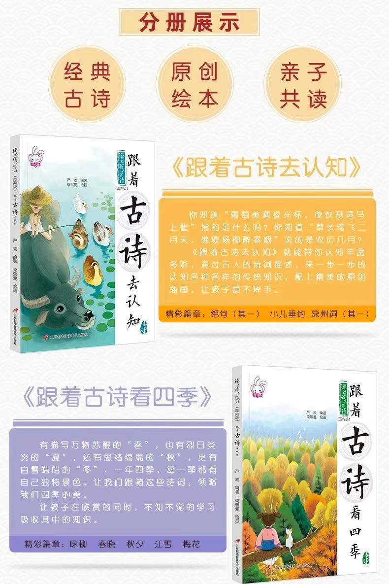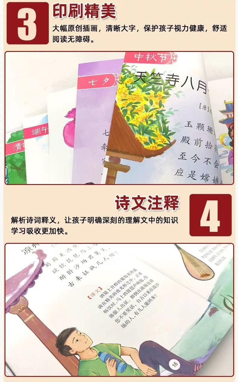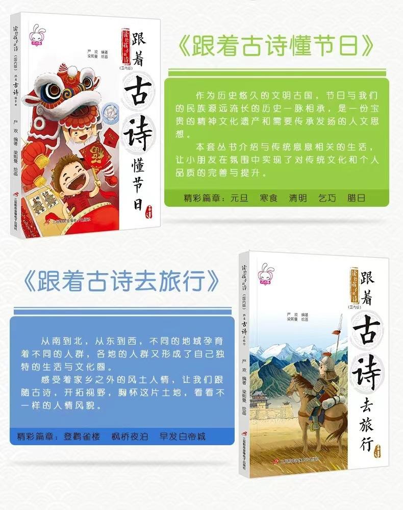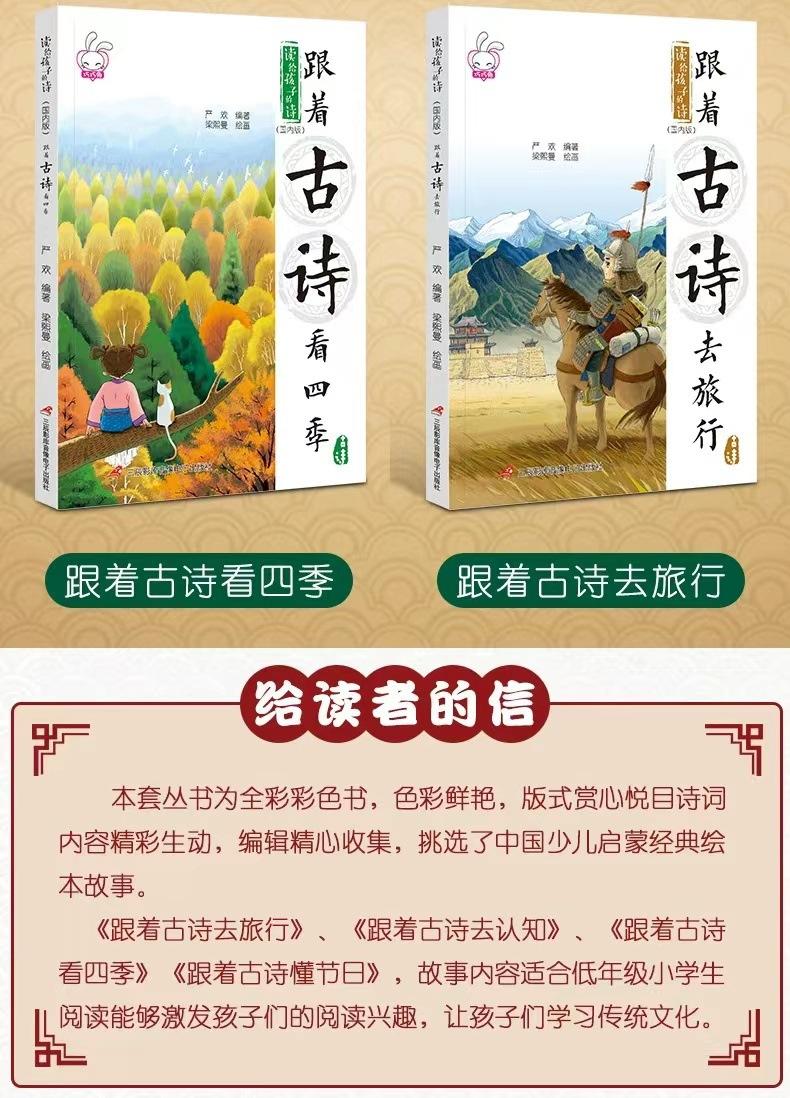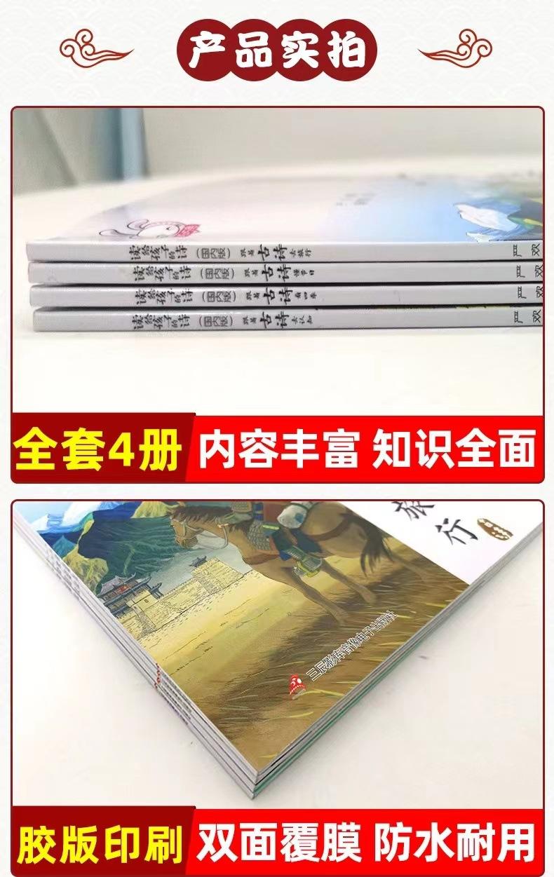 Poemas leídos a niños viajan con poemas antiguos libros ilustrados para niños juego completo de 4 libros 3-9 años libros ilustrados chinos