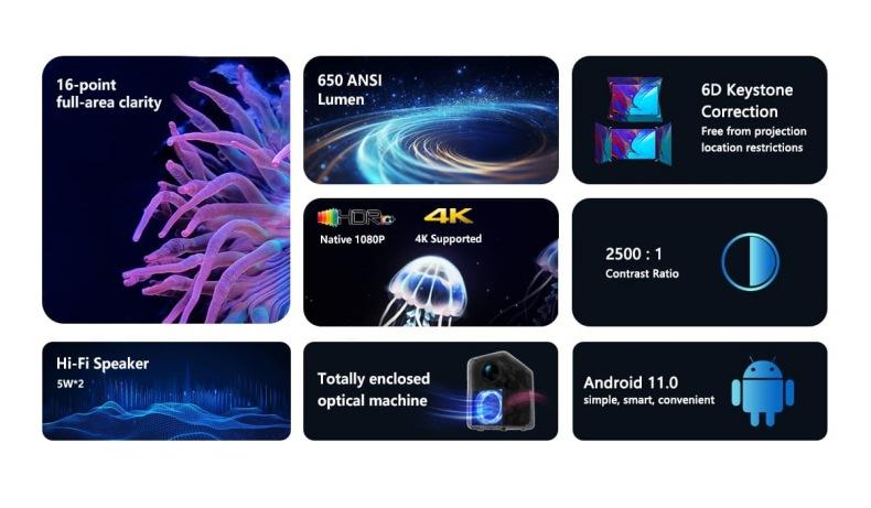 Proyector Chuangrong Resolución 4K Pantalla de Proyección Portátil Proyección