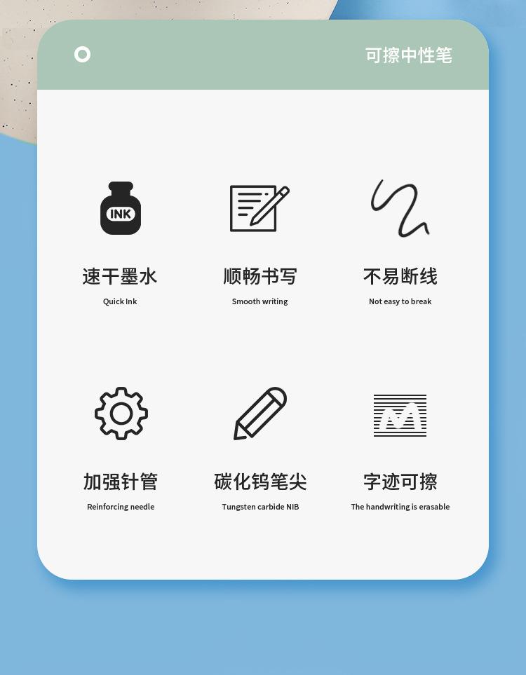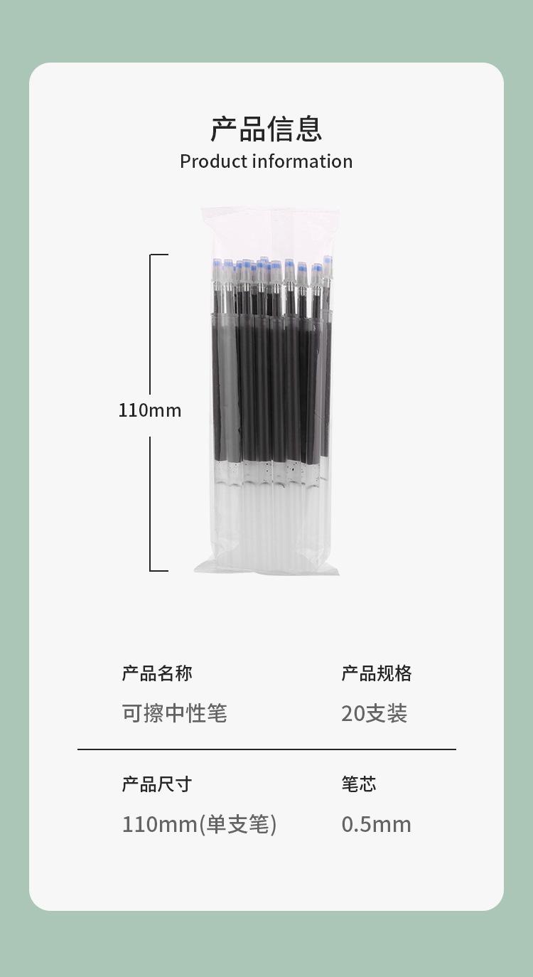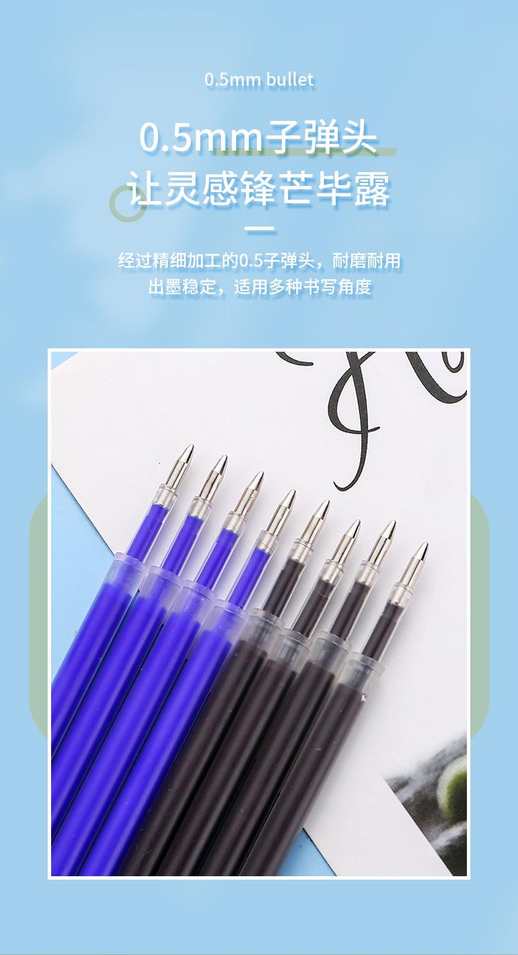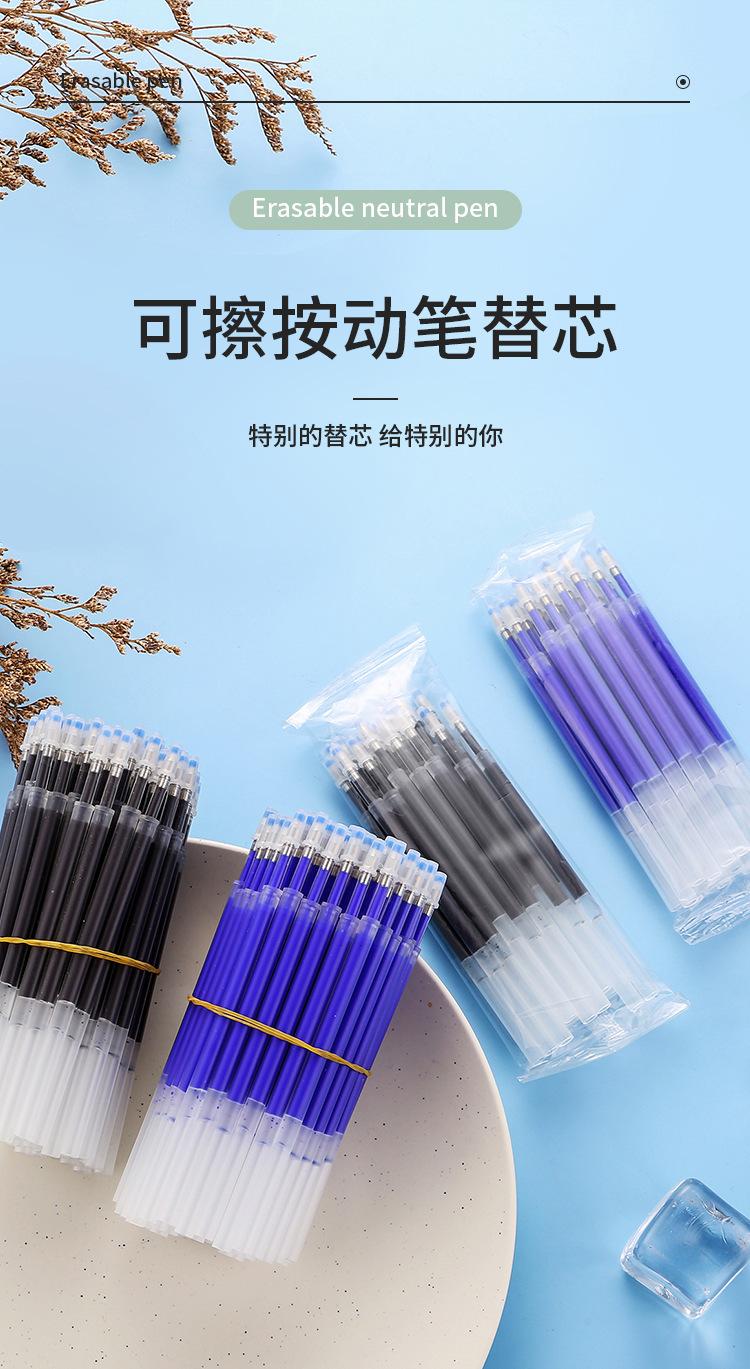 Recambio de bolígrafo borrable de prensa a prensa, color azul cristal, negro carbón, para estudiantes de primaria, fácil de borrar, papelería para estudiantes, venta al por mayor