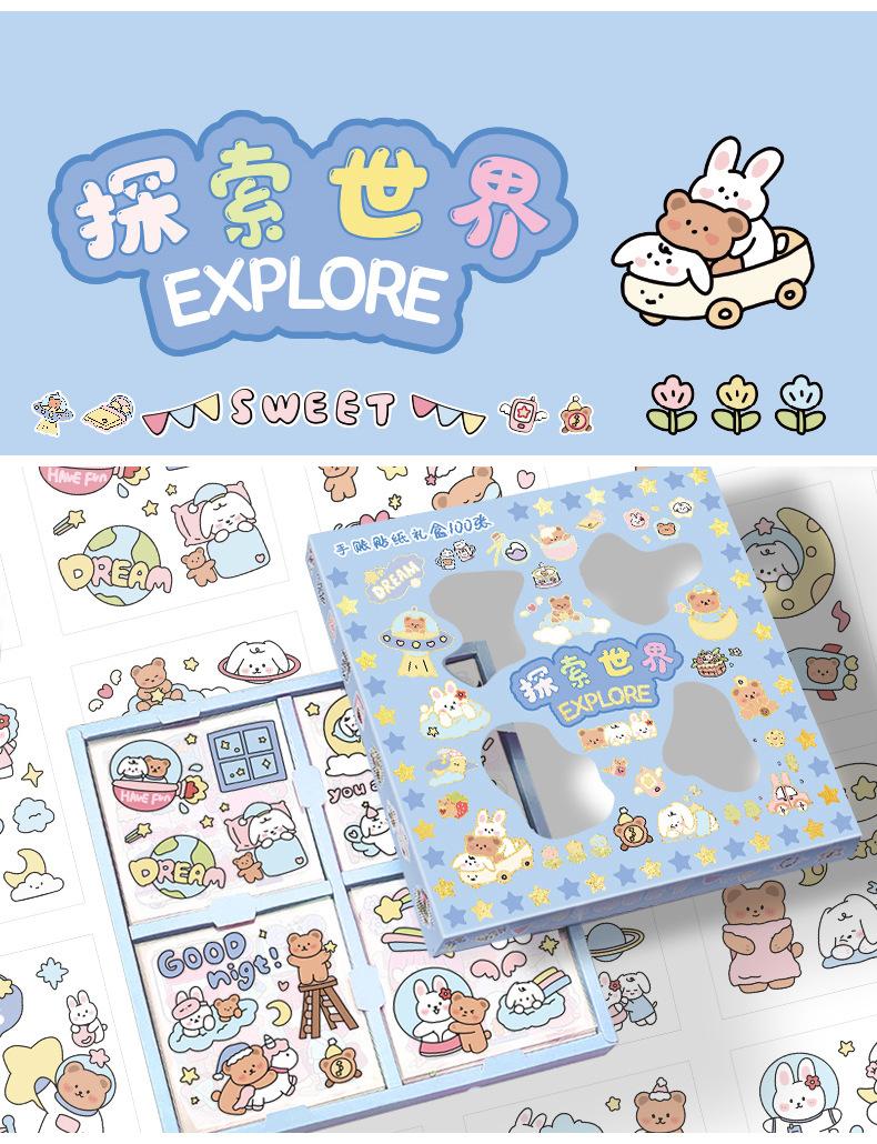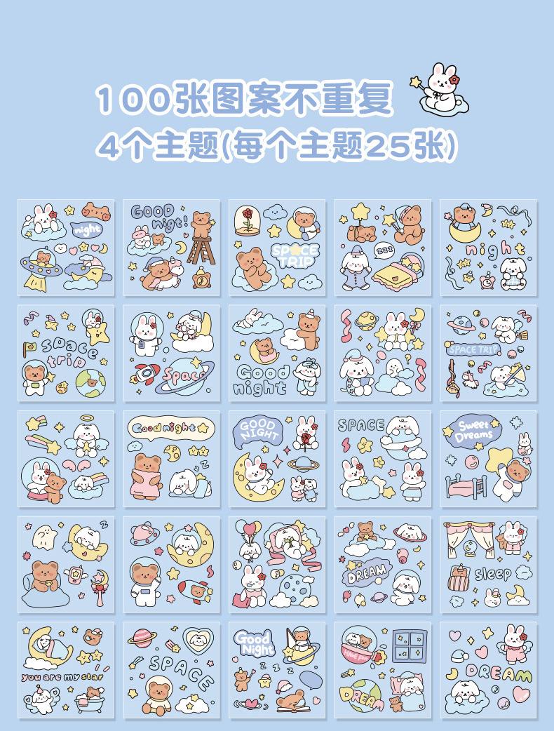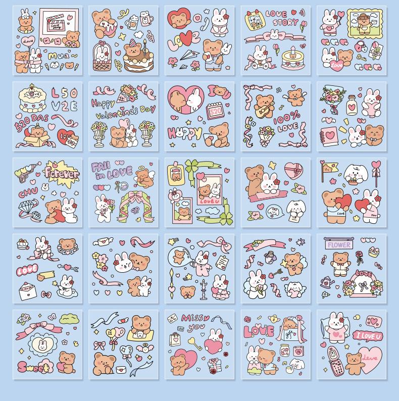 100 piezas de pegatinas de diario traje PET transparente dibujos animados impermeable sin costuras Pegatinas de diario corazón de niña pegatinas decorativas diy