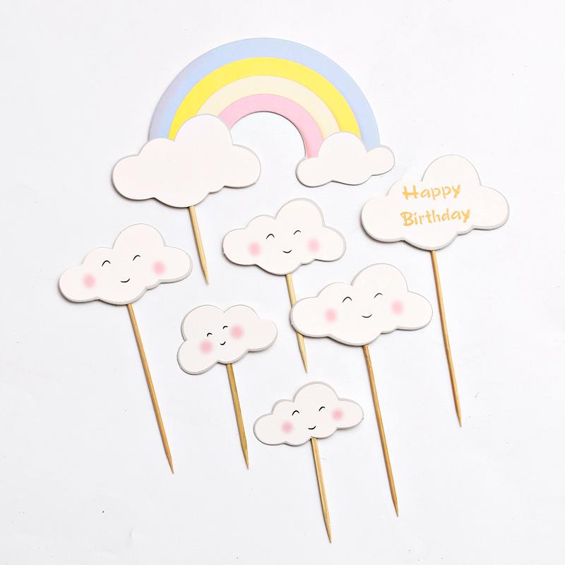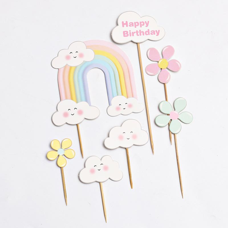 Tarjeta de pastel de arcoíris de nube tarjeta de decoración de pastel de cumpleaños tarjeta enchufable tarjeta flor bandera