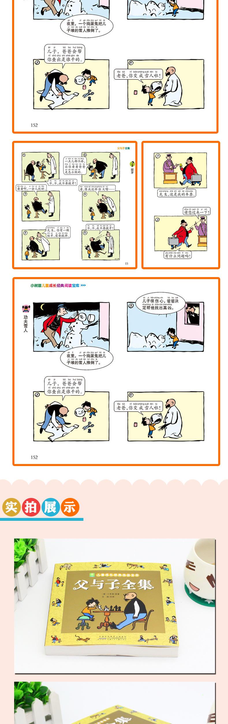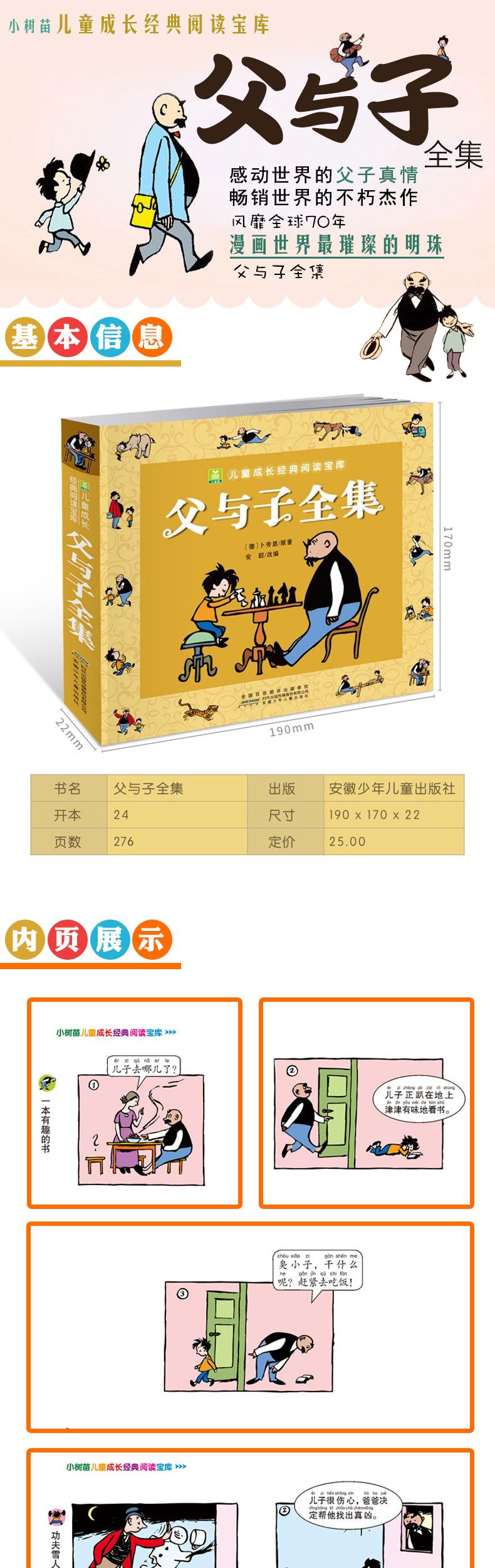 """Pequeño Árbol Joven Crecimiento Infantil Casa del Tesoro de Lecturas Clásicas" es un conjunto de lecturas clásicas adecuadas para niños de 3 a 8 años. "Obras Completas de Padre e Hijo": Este libro se basa en el cómic clásico del mismo nombre del maestro del humor alemán Braun. Está cuidadosamente coloreado basándose en los cómics en blanco y negro, y utiliza el diálogo para presentar la historia de los cómics, esforzándose por expresar la fuerte relación padre-hijo de una manera ingeniosa e interesante, para que los lectores puedan obtener el humor más alegre y sentir el afecto familiar más sincero. Todo el libro está anotado con imágenes y textos vívidos, y puede ser leído por padres e hijos o de forma independiente."""