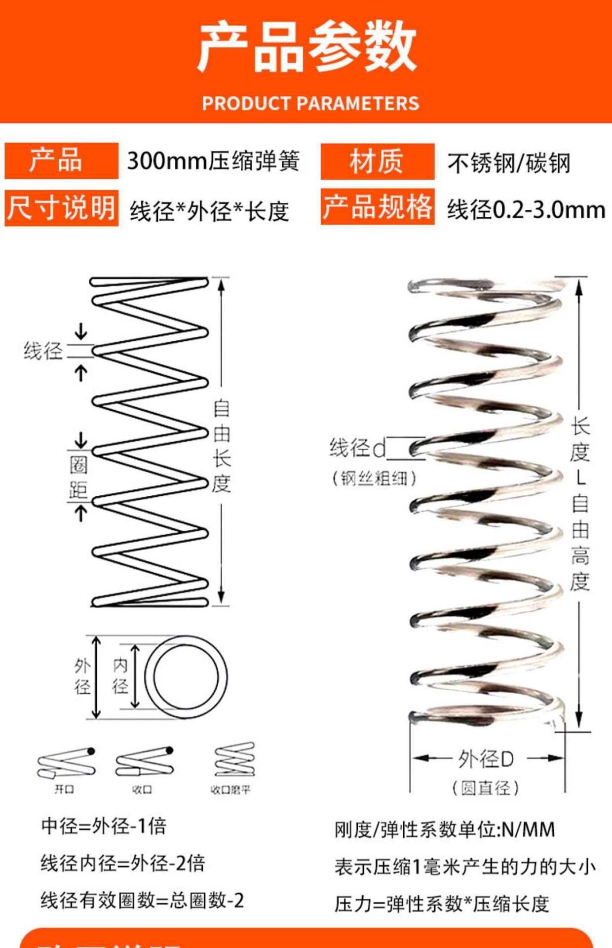 Resorte de compresión pequeño, resorte de compresión de alambre de acero inoxidable 300 largo, presión amarilla, gran fuerza de retroceso, 304 compresión fina, alambre de acero largo, suave, elástico, rey